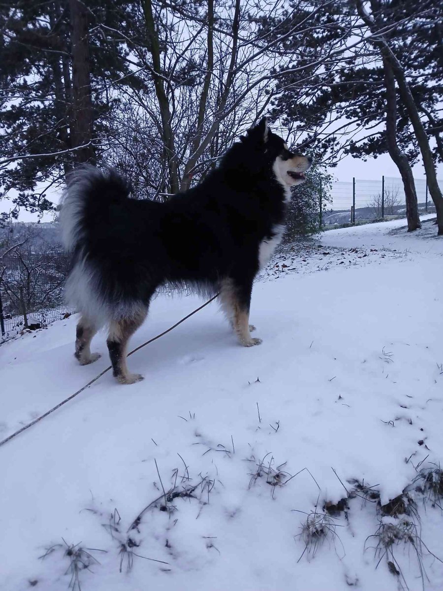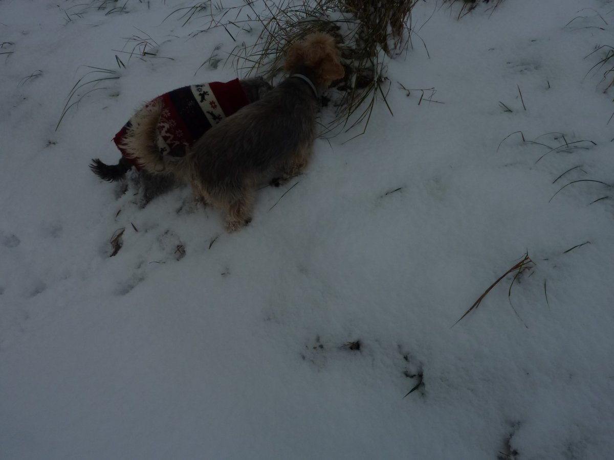 chůzi ve sněhu zvládla za pidipiškotky,pididrobky,jinak by to dááávno otočila a šla pryč…