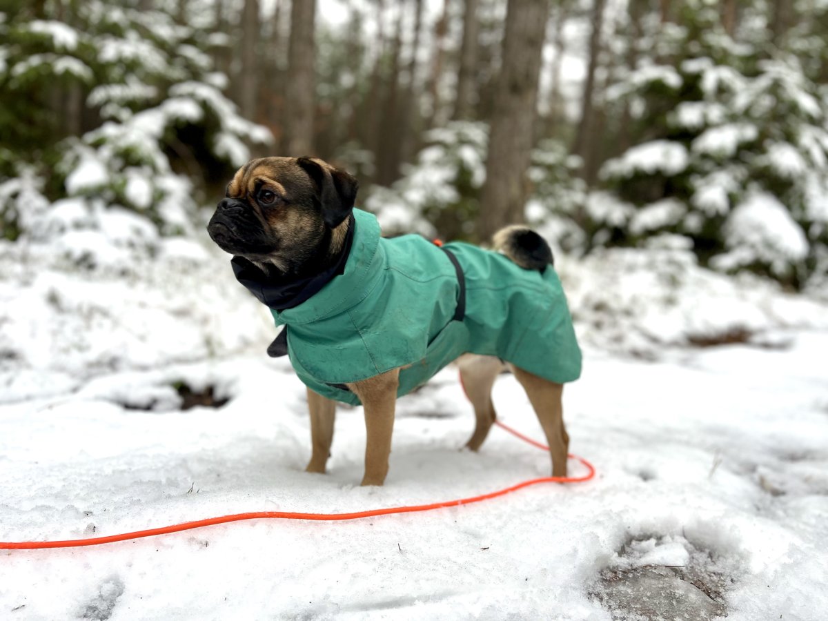 Máme další bundu, tentokrát ze Zoohitu Tiaki Warm up pro sky. Cena cca 290,-, byla akce -20%. Za mě super, lehký kabátek, podšitý stříbrnou vrstvou která odráží teplo zpět na tělíčko, krásně zakrývá i kyčle. Jo zase malá úprava šíře hrudníku a musela jsem zvětšit místo na pinďu, měl ho celýho zakrytýho. Nedělám ze psa panenku, ale jak ho na jaře bolely záda, tak mu nesmí nachladnout. A jsme venku dlouho, dneska ráno v -7 stupních skoro hodinu, odpo býváme i dvě hodiny.