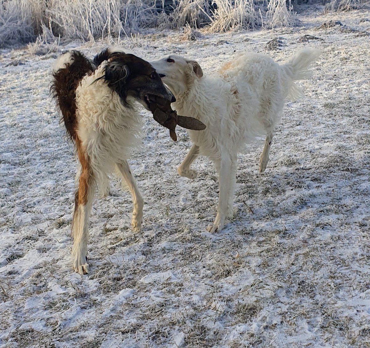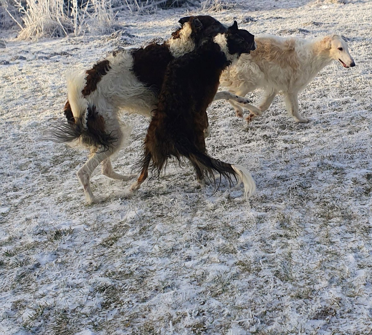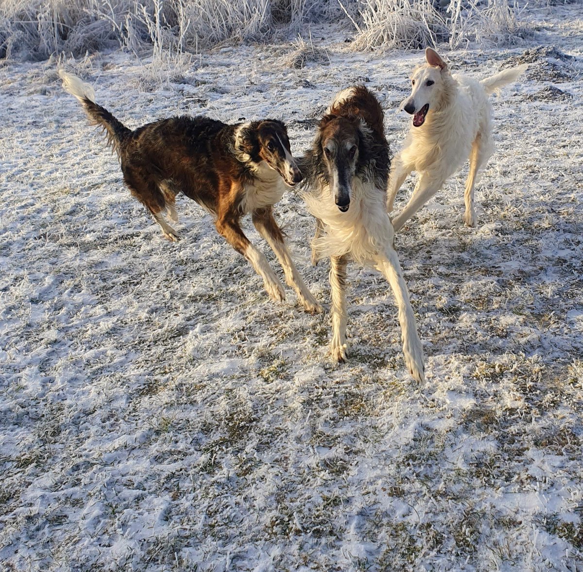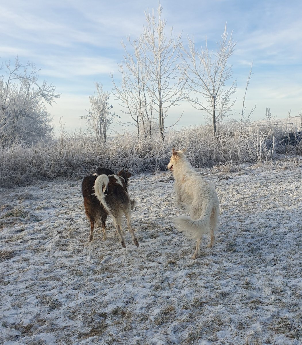 Venčíme svátečně, kluci jsou po cukroví jak kdyby byli nadopovaní🤣, ale je to hezký , jak jsou šťastní. Malej je už skoro velkej, ale společný venčení pořád hrozí ušlapáním, takže se koná jen jednou denně 😉, a náš pátý Bruno prý chce hlavně klid a něco nezdravýho dobrého, jo a hlavně netýrat focením. Co taky máme chtít kmetovi smečky. Jo a kočičáci to sledují nejraději od krbu a všichni posílají pac a pusu😊