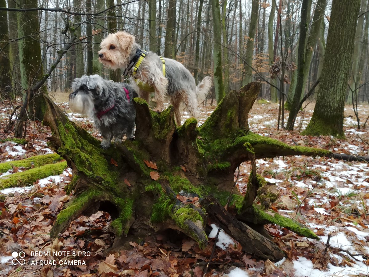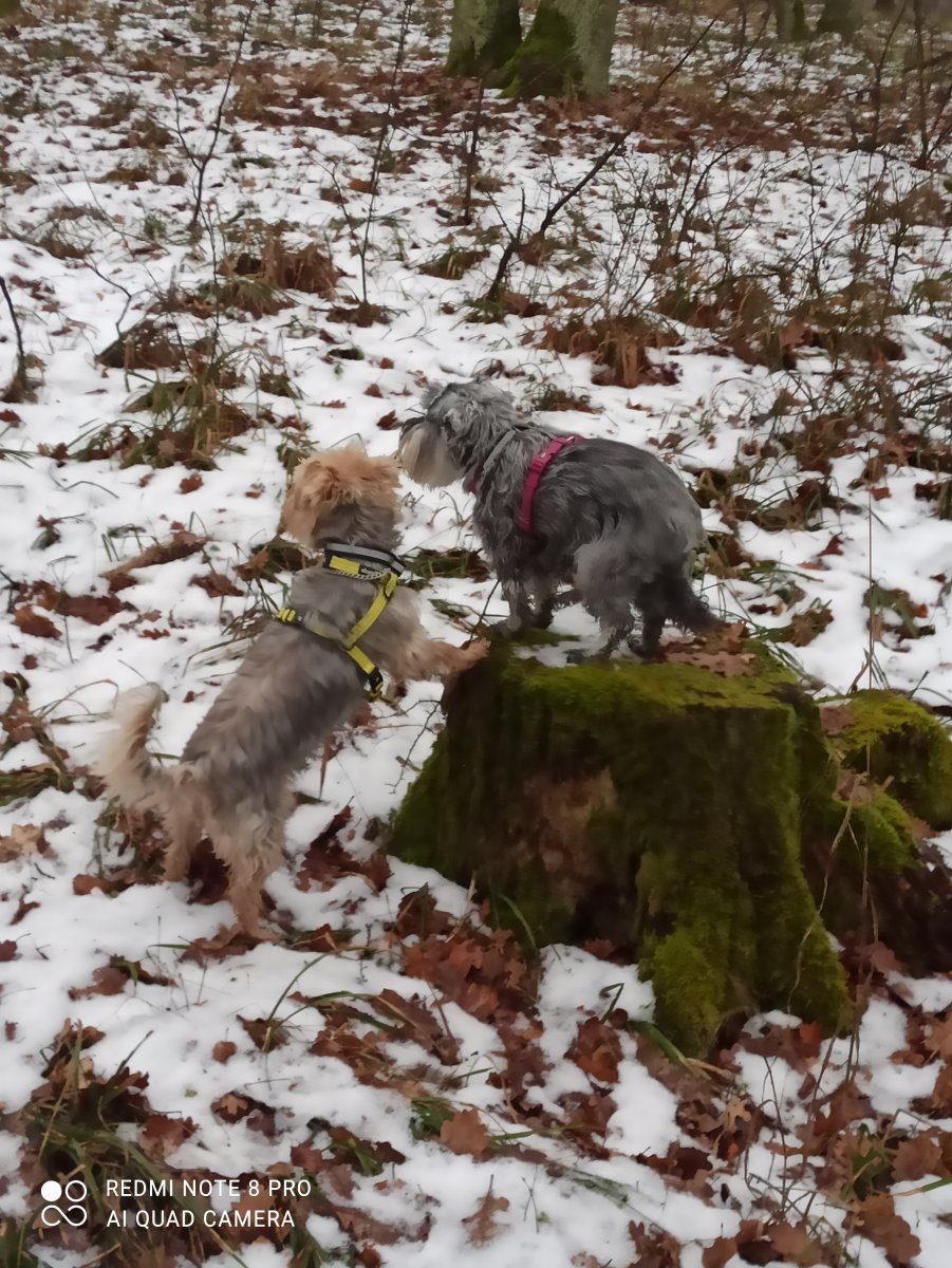 my dnes před odpolední po odpolední ve Ž.lese,Žeryk doma vyžaduje zakrývání-ve dne v noci,tady válel sud😀,Dafi hopala po pařezech-pokojenost..v lese řečko led,ale dalo se to…