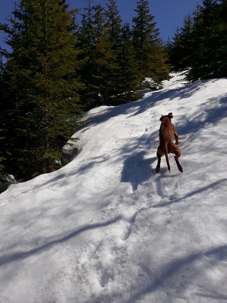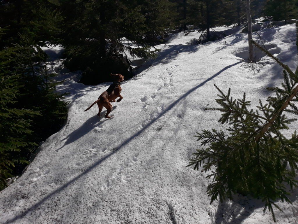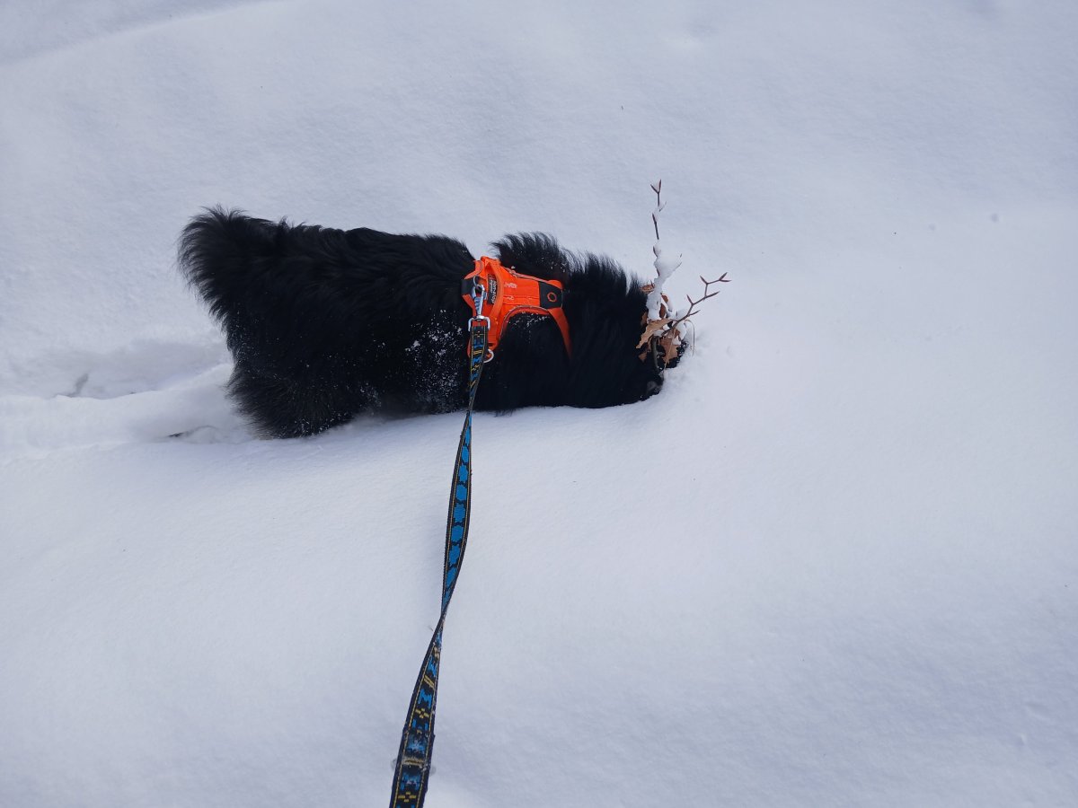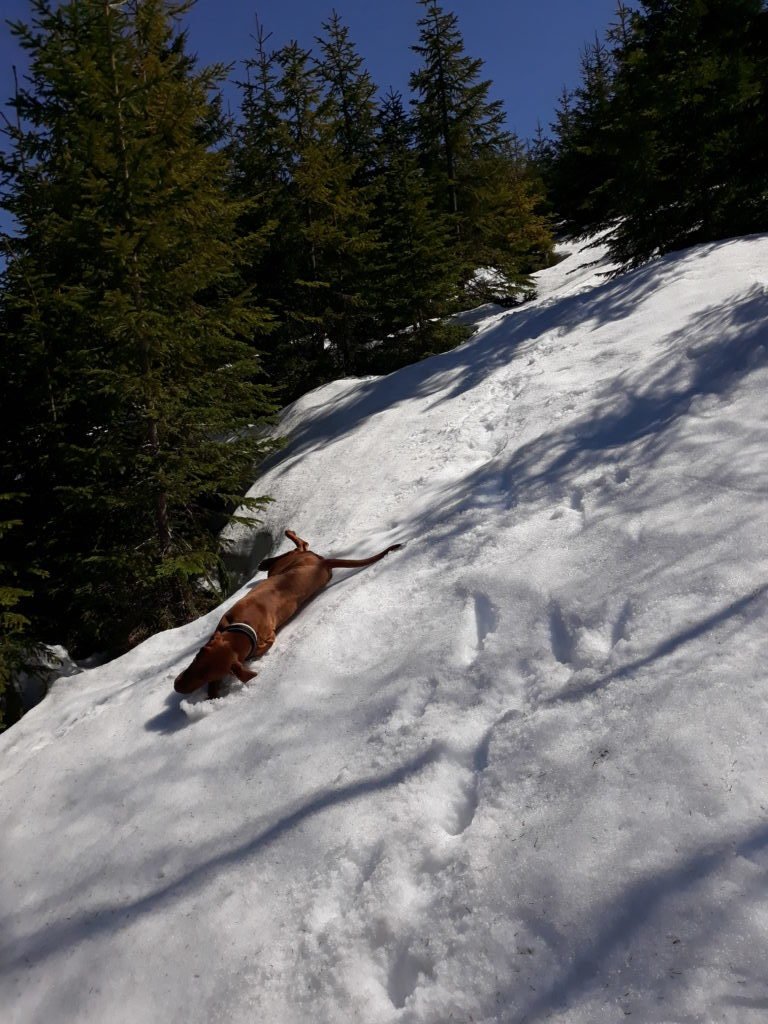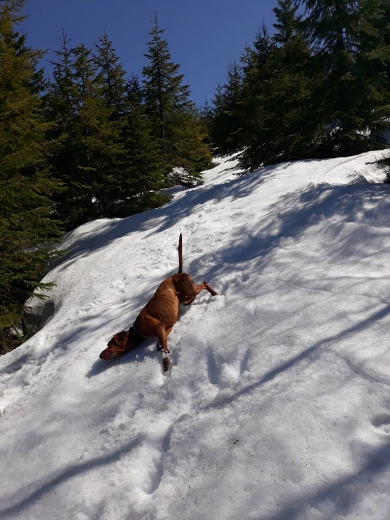 Koukam - vsude stejny. Pohybujeme se venku od jednoho zbytku snehu k druhemu - na a kazdem zasnezenem fleku canici hodi zadicka a blazene se drbou.