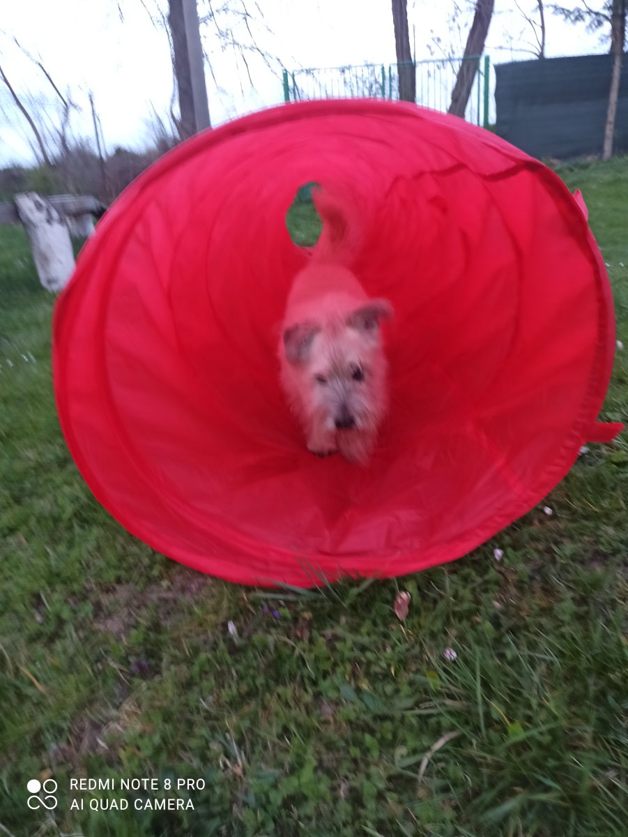 a podvečerní-i s Maxem-kousek mezi pole,pár metrů,pak tunel,učení Maxe a pak na pejsky útočila kočka,jo Maxíkovi jsem sypala do tunelu pamlsky,tak šel a pásl se tam a pak je tam hledal,no nasmála jsem se….😀