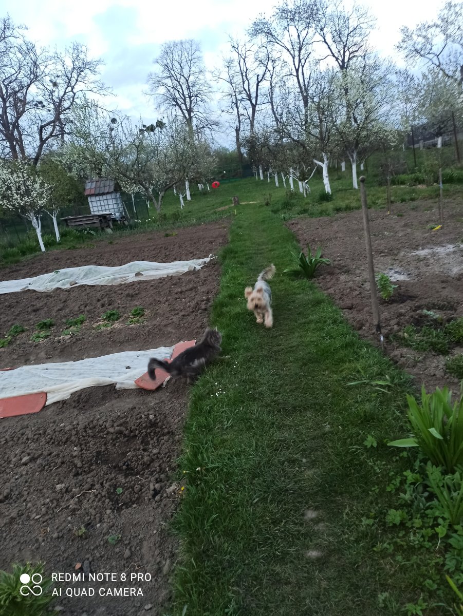 My dnes měli na vycházce barabum🙈, kluci lítali jak rakety, plocha velká, prostě rozlehlá pastvina a oni fakt umí prostor využít, ikdyž tryskají a jeden o druhém má přehled. Ne tak čtyřka Arčí. V trysku skočil těsně před Dobbyho a ten ho v fakt veliké rychlosti nabral někam zboku. Oba vyjekli, menší letěl asi 3m vzduchem a pak tvrdý dopad, větší jen cca metr zpět, je těžší a plný naráz schytal maloch. Dobby otřepal hlavu a pohoda, ale Árčí, jak naplacato dopadl a ležel, tak jen zvedl hlavu a to bylo pláče, odmítal vstát, potom teda musel, neboť jsme nelitovali a odcházeli, tak s obrovským kulháním se vydal za námi. Já raději na něj nekoukala a modlila se, aby to nebyl velkej průser, klukům jsem ho litovat zakázala, neboť by se chtěl nést a 30kg 2km k autu, no to nevím. Tak chudinka pajdal a plakal chvílemi a s Dobbym se nebavil🤣 a najednou na louce čáp a rázem vše zapomenuto, toho přece chci domů a jdu si pro něj. Velcí kluci se odvolali a mládež bok po boku hrrr pro čápa, ten si počkal, až budou kousek, už jsem se o něj bála a pak jim zamával křidly. Zvláštní, od chlupatých zvířátek se odvolají všichni, ale čáp se Arčímu prostě líbil moc. Dobrý bylo, že čtyřku vyléčil a snad teda barabum nebude mít následky. Takovou řachu jsem ještě nezažila, musel do něj napálit tak padesátkou, fakt běžel úplně naplno.