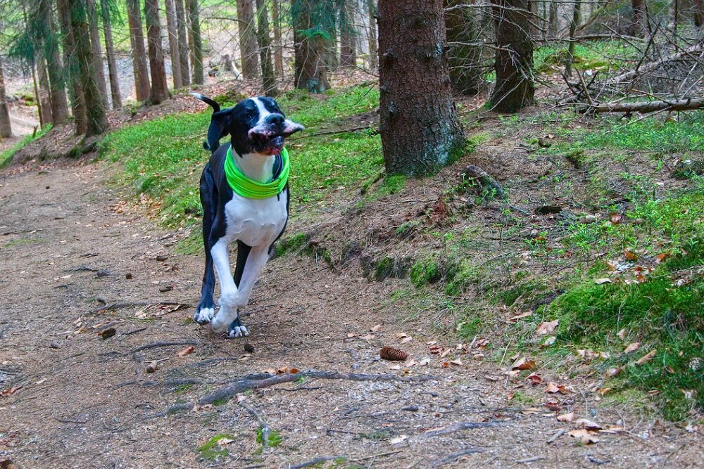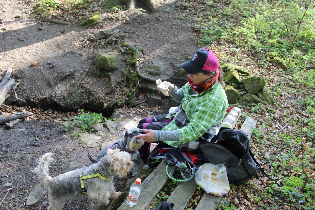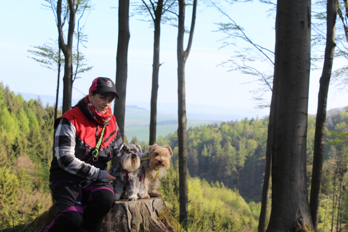 a dnes ráno jsme vyrazily na Střílky-s motorestu Samota,přes most,lesem,ke zřícenině,pak okruh ke studánce,tam snídaně,a zpět,lesem,chladno,slunko,bezvětří,2 aa půl hodiny,krásnýho počasí,psi spokojení,Dafi si hledala pařezy a přiměřeně běhala,Žeryk válel sudy v listí,Dafi běhala tam i zpět,takže velká spokojenost😀