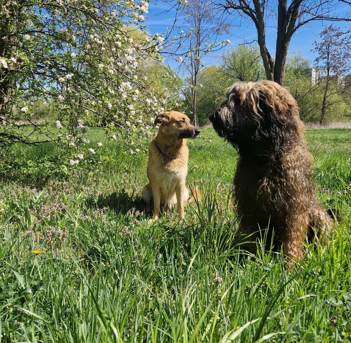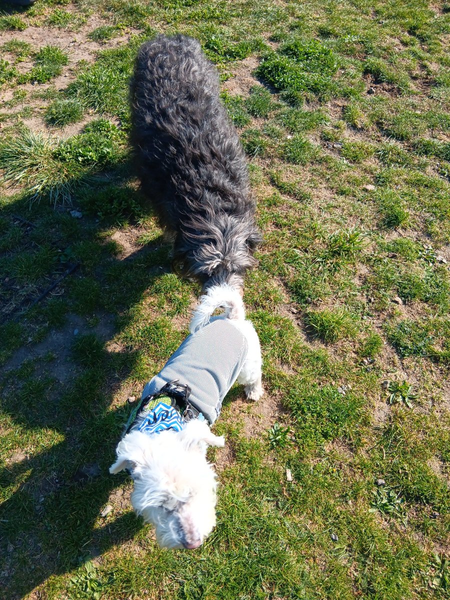 -já po obědě,,že vyrazím s Dafi na vyčurání před barák-slovům-pod,dem čurat-nerozuměla,vodítko v ruce,psí vestu na paničce nepochopila-a když jsem ji zvedla s postele-zamrčela a ohnala se fousama….☹️