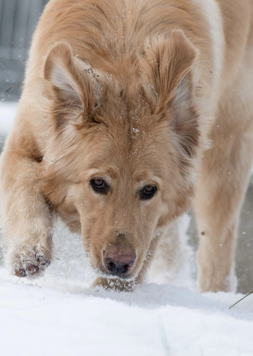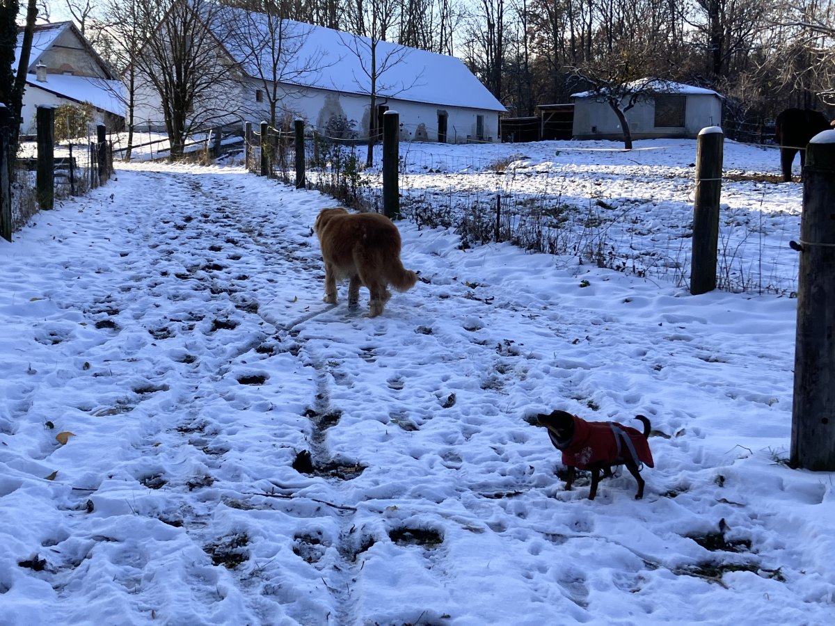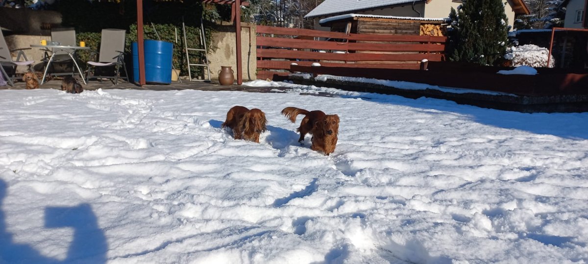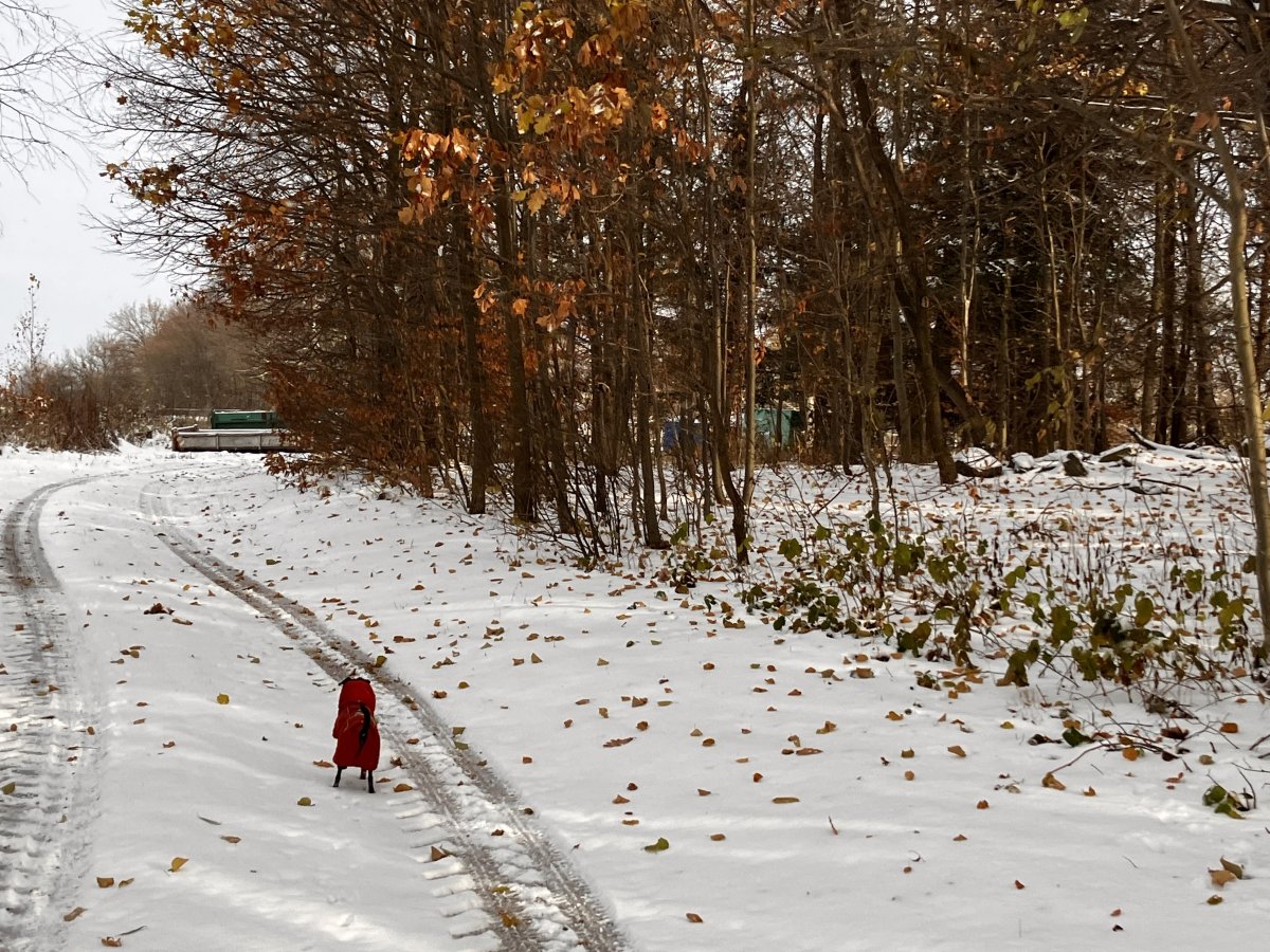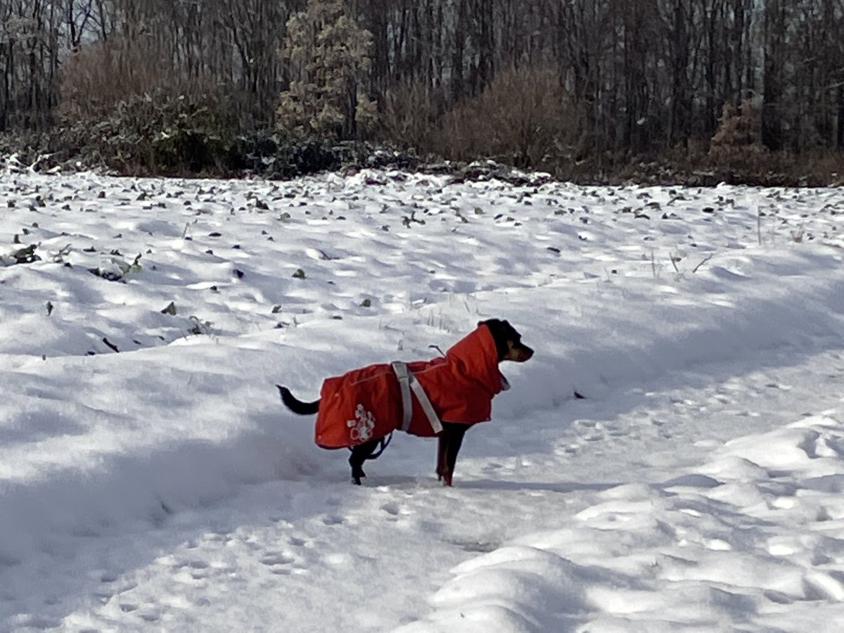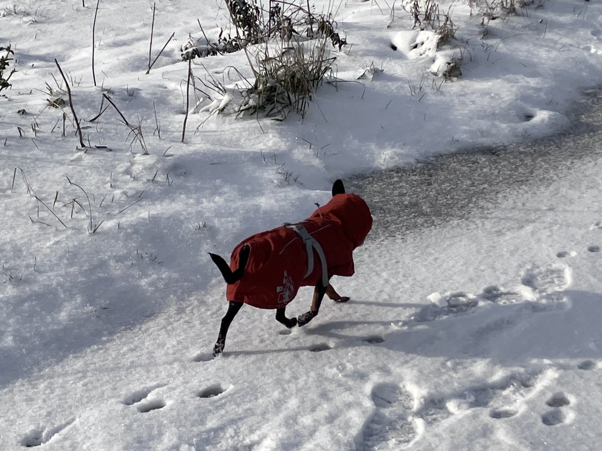 Tak ratloraptorovi vadil těžký, mokrý sníh. Dnes se při -4 stupních nechala na krátkou procházku po vrstvičce prašanu snadno přemluvit. Uff. To jsem ráda, že nebudu muset čekat s procházkami až do jara 😂