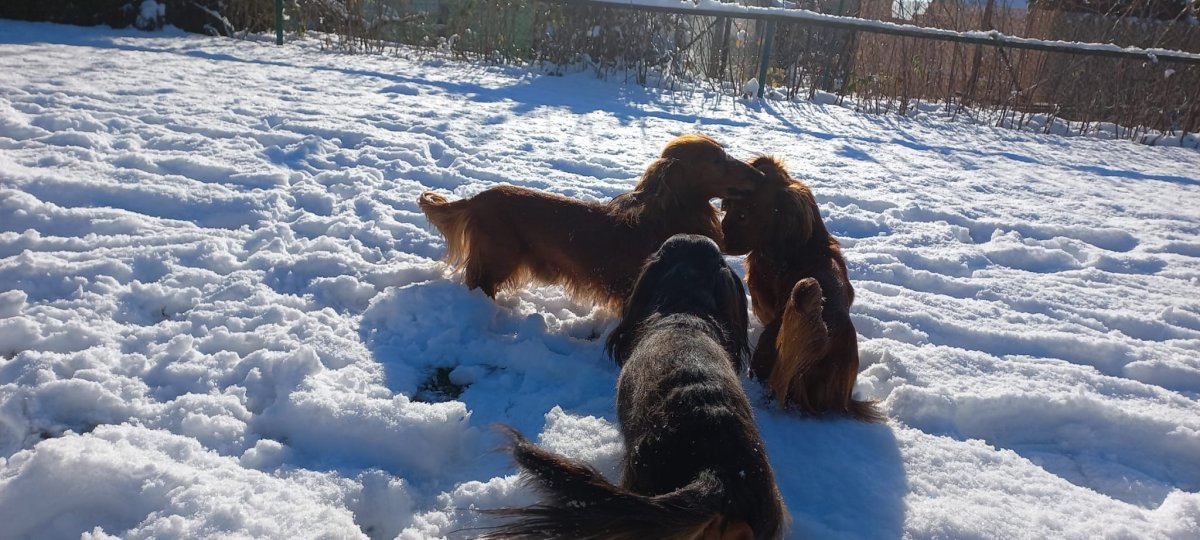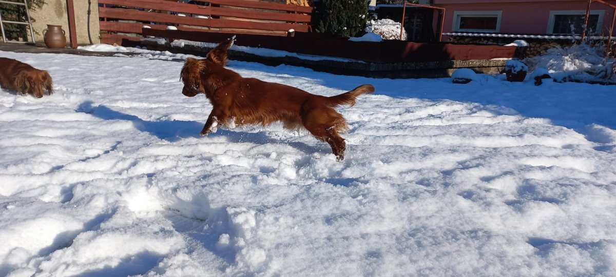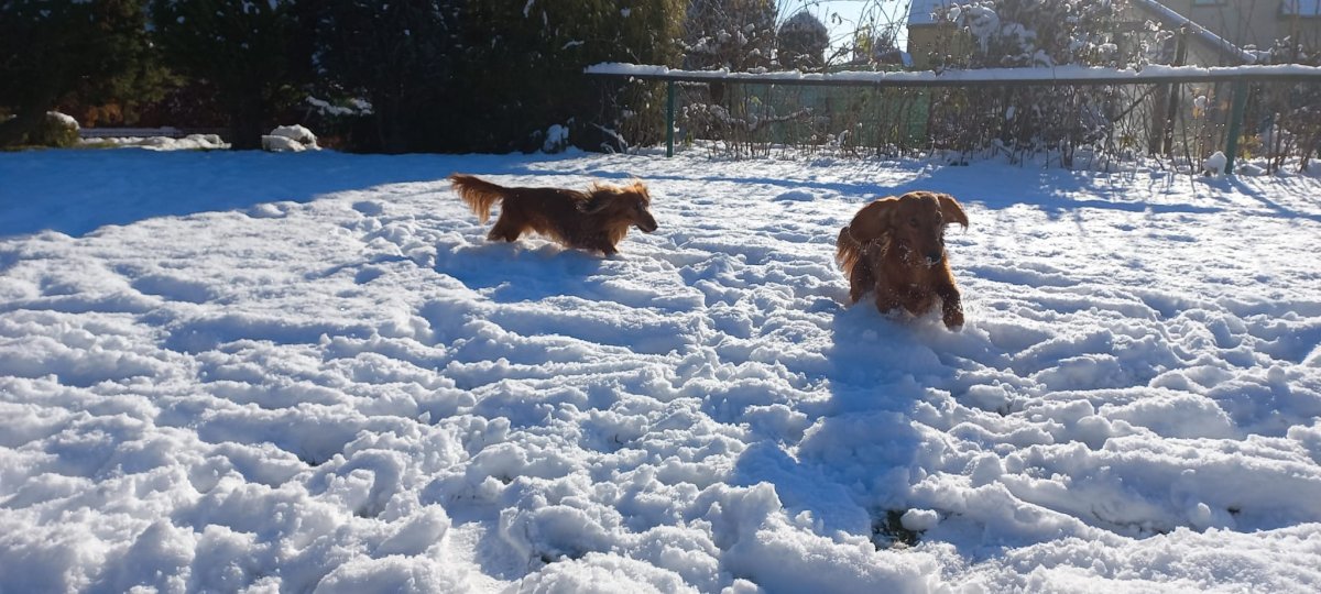 Z překrásného podzimu jsme vpadli rovnou do zimy. Miluju první procházku brzy ráno (kolem půl šesté) - nikde nikdo, vločky se pomalu snáší na bílou peřinku, sníh vrže pod tlapkama… Za chvilku půjdu doplnit krmítka, má se sníh sypat celý den. Jsem doma (za pracovní sobotu), tak si to hezky užijeme…jen tedy poo se stavíme na veterině - Yodu začaly trápit anály a zrovna uděláme kontrolní sono, co dělají cysty… To jsem opravdu zvědavá
