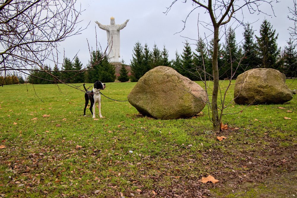 nejprve nejvyšší socha Krista (kam se hrabe Rio 😉 - mimochodem v roce 2011 získala anticenu za nejšílenější stavbu) na půlce cesty od nás k moři. Pak troška vlnobití (foukalo hodně, ale bylo 11 stupňů nad nulou). Racků byla spousta - úžasný byl i ten kovový. No a poslední protažení nohou u námi oblíbeného vodního zámku v Bad Muskau