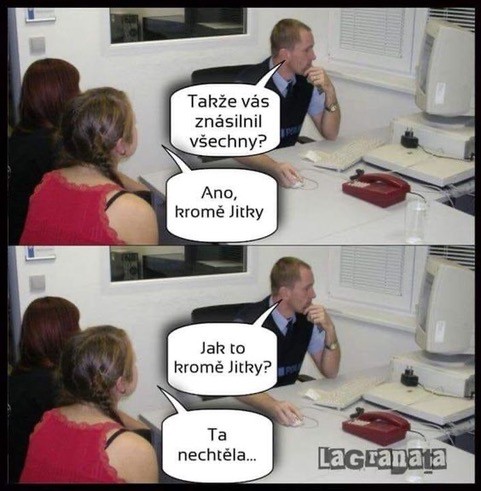 A ještě jednu....ta je už úplně stupidní. Školní výlet, děti 9 let. S nimi jeden z tatínků, měl tam i svoji dcerku. Večer šel děti zkontrolovat, přikryl tu svoji a přikryl i tu vedle. Ta se svěřila rodičům, že byl u postele a sahal na ni. Rodiče z toho udělali velkou aferu. Měl dost kliku, že v zaměstnání neměl s dětmi nic společného, nemohl být v zaměstnání postižený. Ale vyšetřování a tahanice kolem toho byly docela dlouho. Je to už dávno, ty devítileté děti už jsou dospělé. Dnes by ho možná zavřeli a dceru mu odebrali.