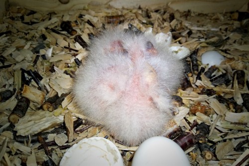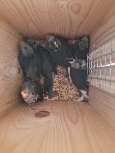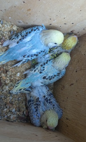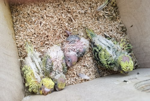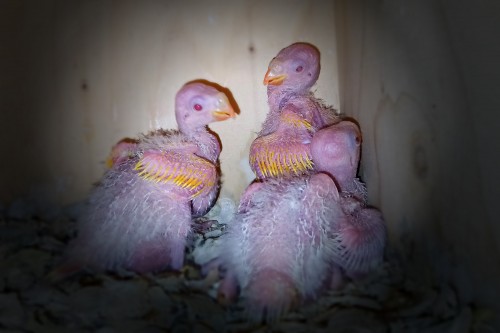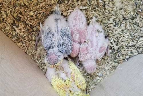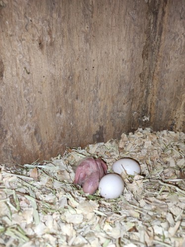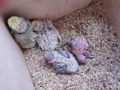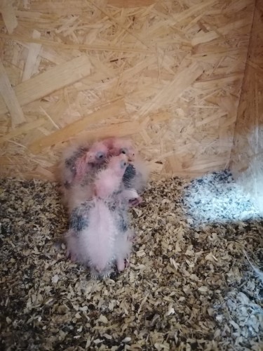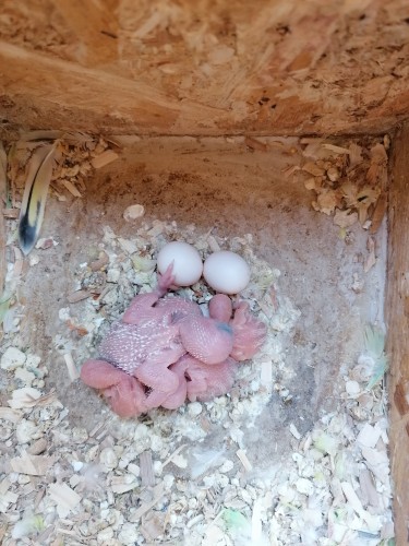 Jejich první hnízdění a hned mi udělali radost. Z pěti vajec tři mladé :-) Princky pastel.