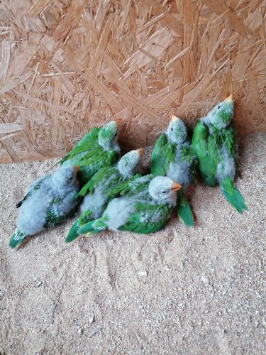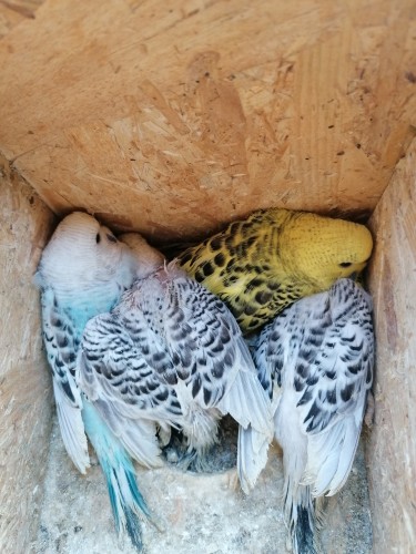 Anonymní:6 mladých nádherných v jednom hnízdě od 100% páry, za 3 roky bez jediné ztráty, bez jediného čistého vejce. 5 mladých od mladé páry rosela penant modré straky. Jejich první hnízdění. Mladé TCB andulky, některé už jsou i venku. 1x mladé od rosel, 1.0 gold gold/opalín 0.1 opalín /gold. Pevně sedí nechtěl jsem ji rušit focením. Zbytek ještě mladí ptáci na chov. Jediné čemu se nedaří je zkušená pára korel, ale nevadí i tak spokojenost.