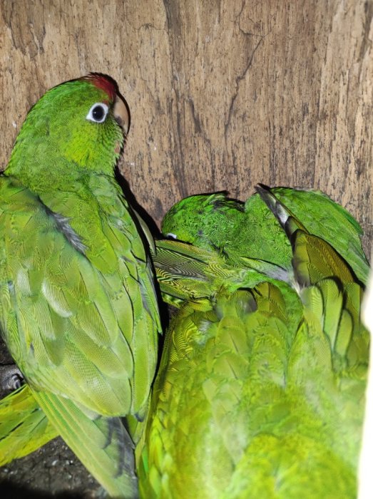 Aktuálně: 3 mláďata aratingy škraboškového okroužkována a 3 mláďata druhého páru začínají opouštět budku.