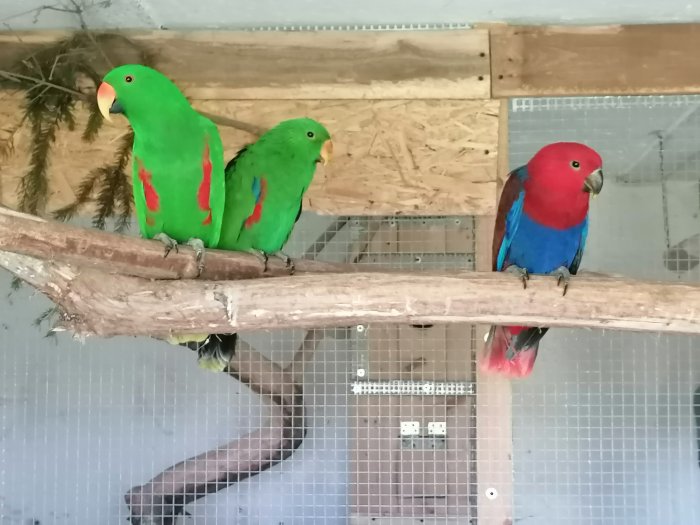 Letošní odchov 1.1 eklektus ruznobarvy a 1.0 amazonan vinorudy.