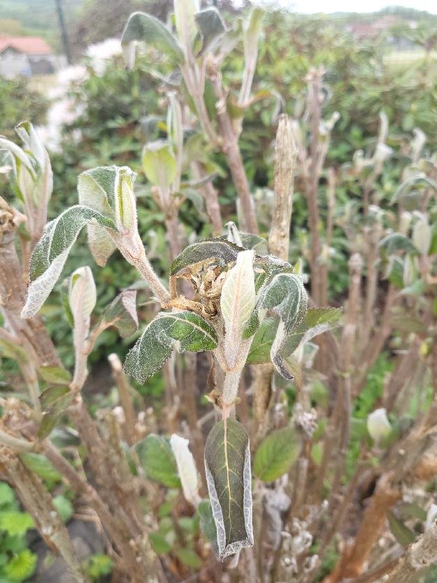 Sago, nás to čeká tuto noc, jabloně jsou v květu i u nás. Zbytek už má mini plodíky a to snad vydrží. Bolí ty vistárie, o ty květy určitě přijdem a nevím, jak dopadnou kvetoucí jahody, zkusím přikrýt alespoň část😟 Následky dnešního(nakonec-1.3st) jsem našla na sargentových hortenziích (velké chlupaté listy)