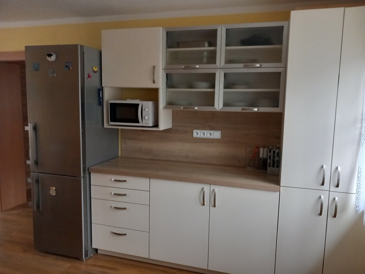 A na poslední fotce jsem cvakla část kuchyně, mám ji do písmene U, tak jen malá ochutnávka. Nábytek v přízemí je z lamina, nábytek v patře z masivu, všechno od jednoho truhláře, jsem s ním nesmírně spokojená, i když je drahej jako prase, ale vize je taková, že mě to přežije a pak se děj vůle boží!
