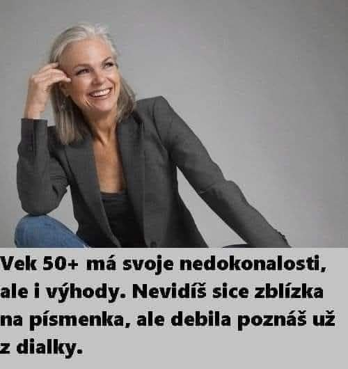 Navíc…všechno je relativní…moje mamka (84 let) mi nedávno říkala, že zemřela nějaká její známá a říká mi “ale to byla mladá holka, bylo jí 72 let”….takže super, i po sedmdesátce se mi může stát, že mě někdo označí za mladou holku👍. A naopak, často slýchám mladé lidi, kteří překročili dvacítku a blíží se třicítce, jak o sobě říkají “no jo, už jsem starej/stará”….