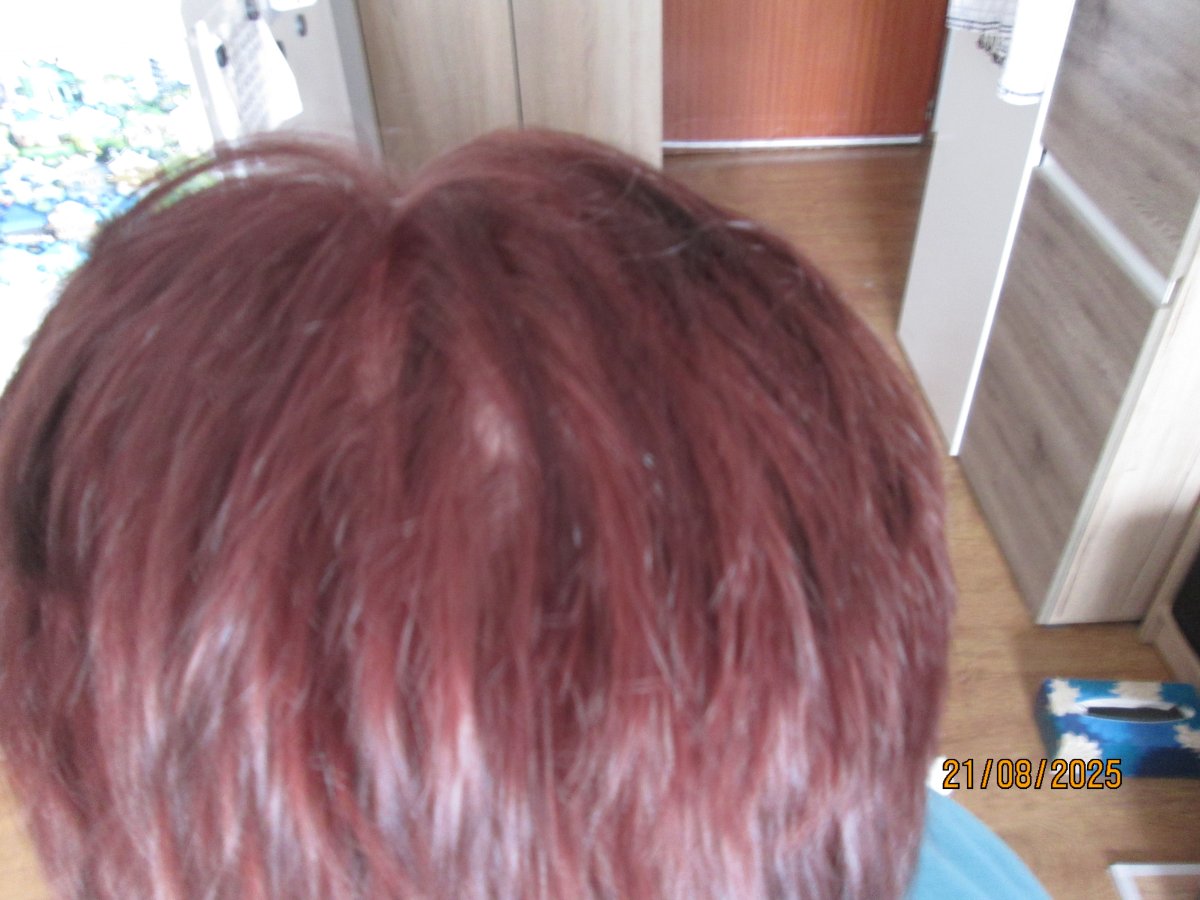 Bobi tohle je hezká barva👍vím že ji míváš, pasuje ti👍Já tam nic nedobarvené nevidím a i kdyby bylo, alespoň to nebudeš mít jak helmu.