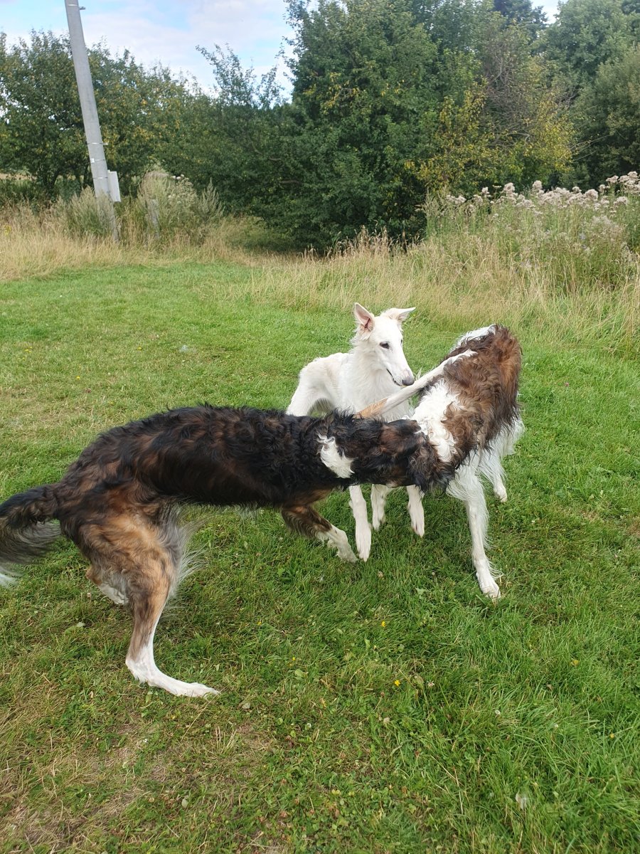 Krásně jste to shrnula s barzojíky. Prvního jsem měla jen jednoho, byl více méně pořád se mnou. Potkávali jsme se se spoustou psích kámošů, trávil s nimi spoustu času, doma měl kocoura. Vypadal spokojeně. Byl šťastný pes. Ale od té doby, co mám bráchy, a teď k nim malýho, tak vidím, že jsou šťastnější, když má barzoj barzoje. Třeba dnes, nejprve si oňufňávají a okusují hlavy, pak honička, potom Satan málem bráchovi ukousl nohu a teď spí na megahromadě.😍