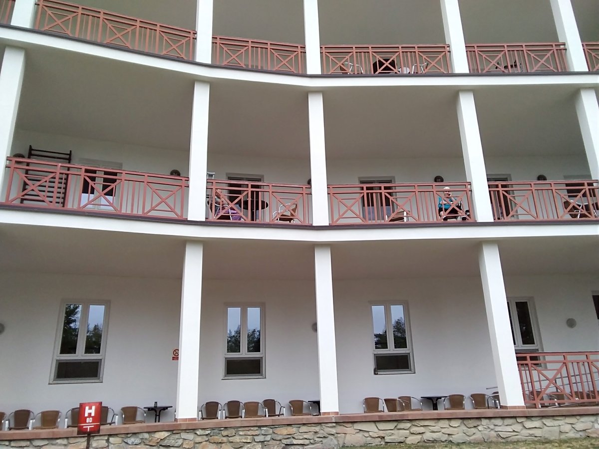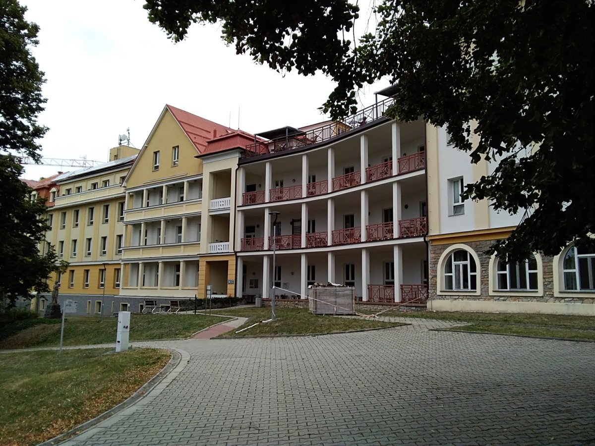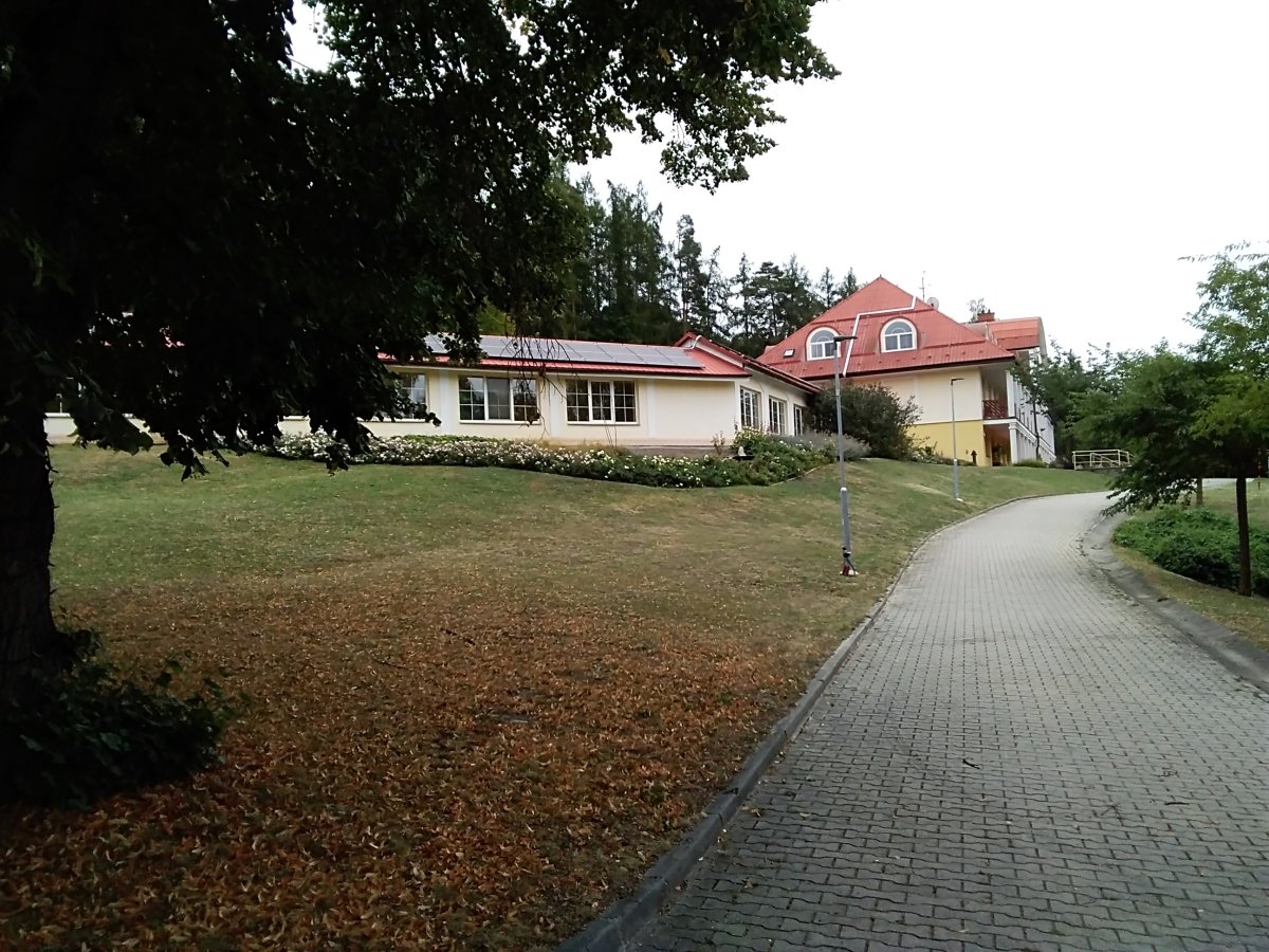 Tak jsem vám nafotila park.. A to jsem byla jen pred barákem. Je ještě dovnitř kus. Jak je ta socha,tam sedavam, luštim krizovky, nebo kecám s Jarus.. A za ni to prvni okno v přízemí mám pokoj. Teraska je po celé delce těch 4 pokojů, a jsou tam sušáky.. A ta venku je v každém patře, jsou tam stolky, dnes je tam nahoře rachot.. Dá se sedět venku. Já jsem byla už ušla, tak jsem supla do dupacek a cucim na telku.. Na veceri byla bilkova pomazanka a celozrny chleba..
