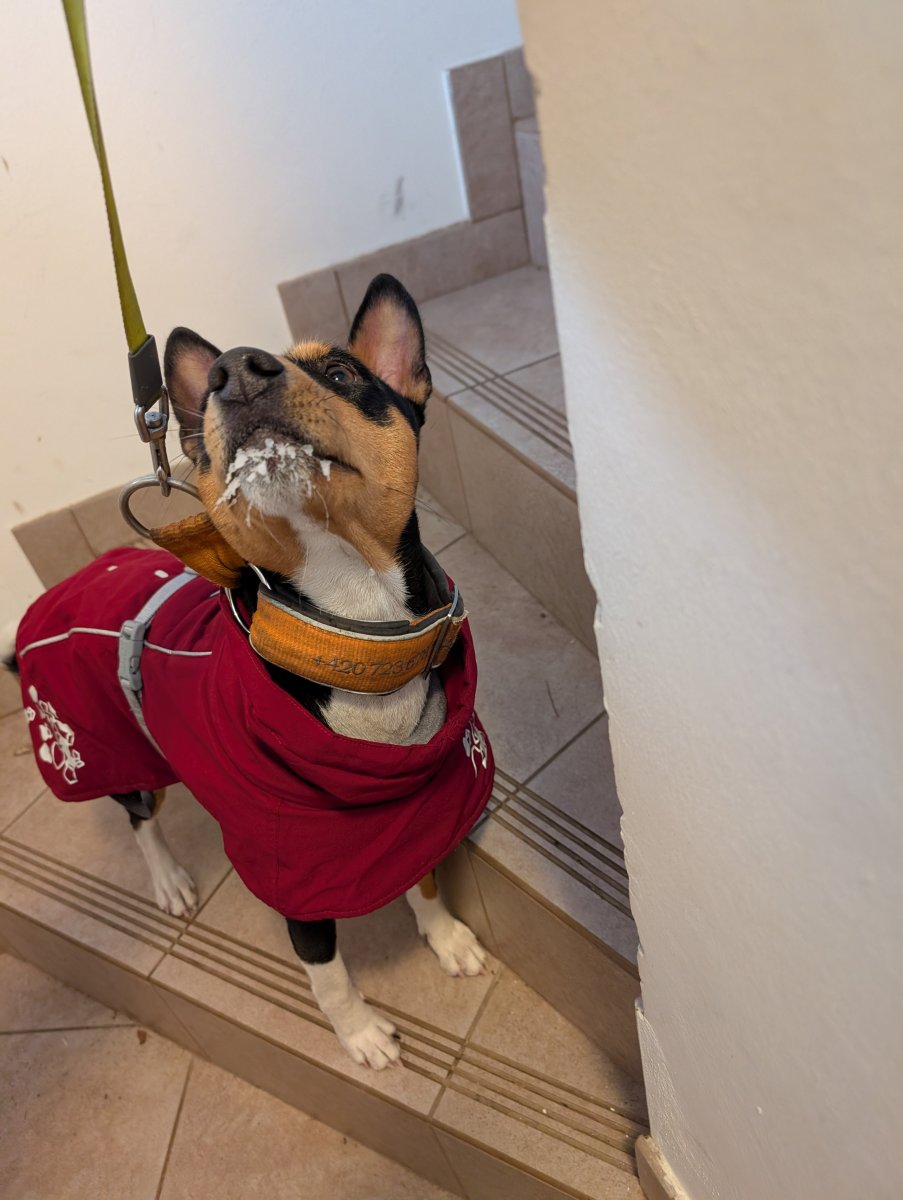Když jsem vstávala v těch 7h bylo jen -16(teda na rozdíl od vašich teplot😉) Legíny nemám ty vyloženě zateplené(ano znám, vím o nich, dokonce jedny podobné mám do zahrady) ale mám takovou zimní verzi, vevnitř počesané, že jako nejsou vyloženě ty tenké letní legíny. No nohy jsem měla po návratu z obchůzky jak opařené. A áno, dokonce v mrazech pod -4st už nasazuju kapuci na mikině😏 A dneska bych na ni možná snesla i tu od bundy, těch -16 už bylo hodně poznat. Po těle pohoda, to jsem fakt navlečená a chůze mě zahřeje. Mám tričko z krátkým, na to termotriko s dlouhým, dlouhou mikinu pod zadek a lehčí zimní bundu. Tlusté ponožky a trekové nepromokavé boty. Teda nízké, ale zima mi ještě nebyla, u nás do nich sníh nenaberu, z těch tří centimetrů, co napadly😏Ani dnes jsem si rukavice nevzala a dobrý, ty dlouhé rukávy stačí, udělám pěstičku, rukáv mám přes ni přetažený😀