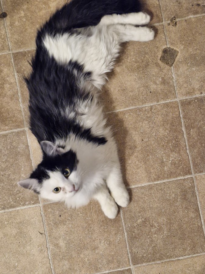 Malá kočka je Mája, natahuje se teď jak žvýkačka a už tady se mnou asi bude muset bydlet nafurt, protože dělají s Mňaukem všechno spolu.