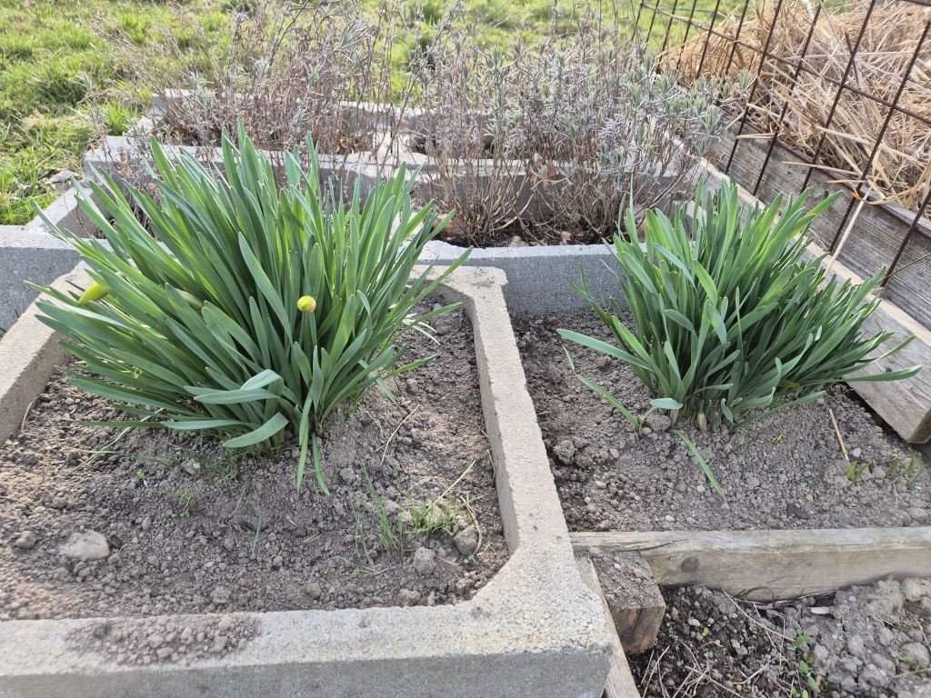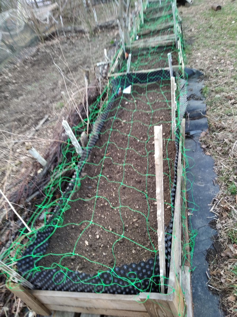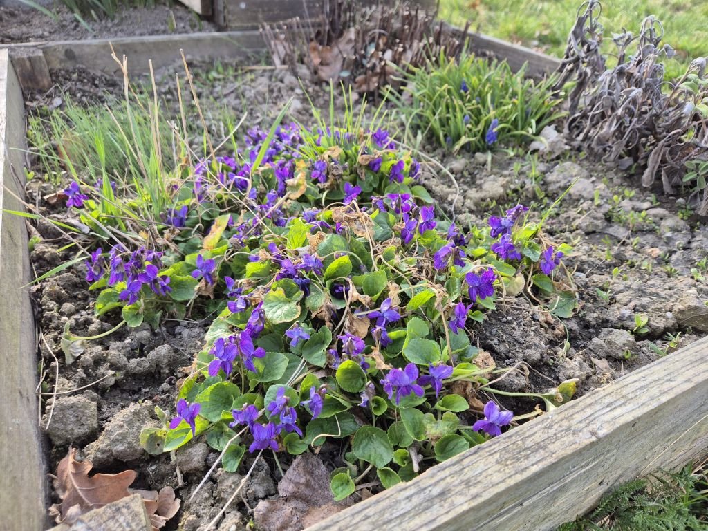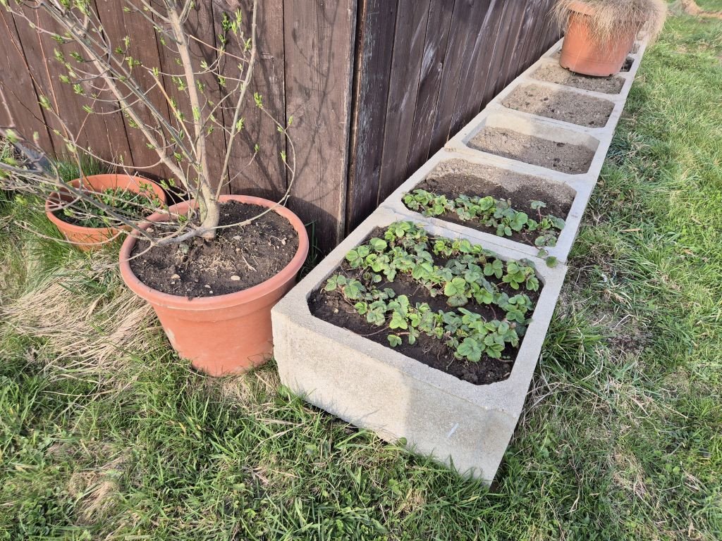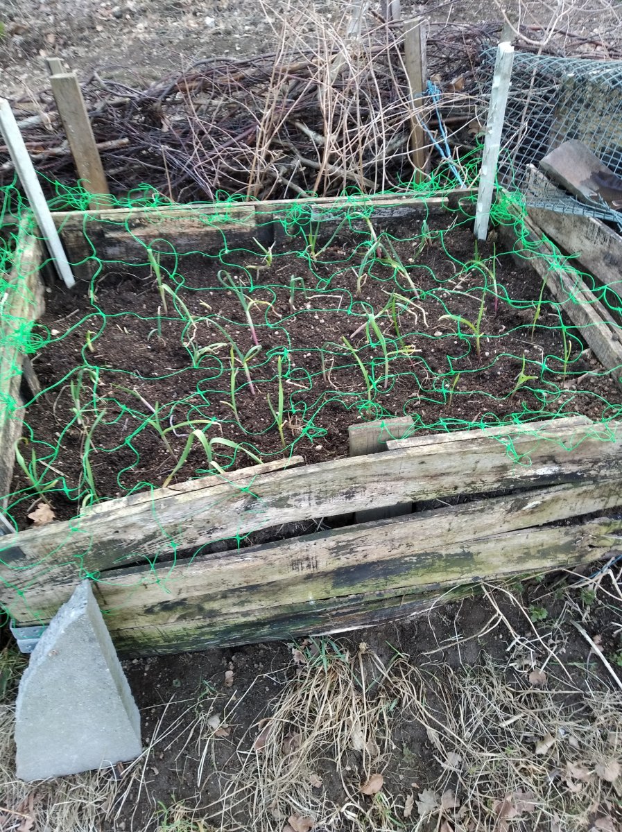 U nás se záhonky dělají bagrem, ještěže máme tu techniku, až na to pletí, to jsme dělali ručně. Cibule zasazená, musím záhon pořád polívat, protože nám sem lezou kočky od podnájemnice, a hrabou se v tom, nějaký cibulky mi vytahaly, svině (pardon, ale nejsou moje, ať si táhnou na své - i když je to vlastně zase na mé, já se o ně neprosila), česneček roste pod slámou, fialky jsou krásné, mám ráda, jak voní, modřince se taky klubou, narcisy jsou pozdě, na staveništi už byly před 14 dny. Jahody jsem zase přesadila, chudáci. Zatím jsem pro ně nenašla to pravé místo. Růže patrně odešly, a břečťan na zídce bude taky přesazen, zídku pomaličku ruším. Je to blbá práce z těch kakáčů vytahovat hlínu. Azalce jsem dosypala zase rašelinu, tak chudák pořád nějak živoří už mnoho let.