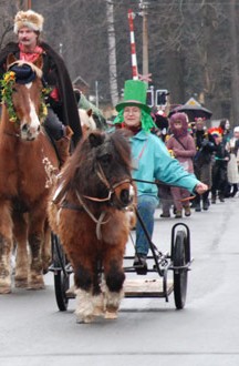 No a ponička se kupovala na jedno oko slepá, opotřebovaná, u nich vypásala zahradu, k nám šla jen jako společník k poníkovi, a tuhle roli splnila báječně. Ještě na ní děcka stihla odjet dva Huberty a trochu se zapřahalo, než zchromla úplně (na foto na Masopustu - ponička jako štika, kočí jako vodník).