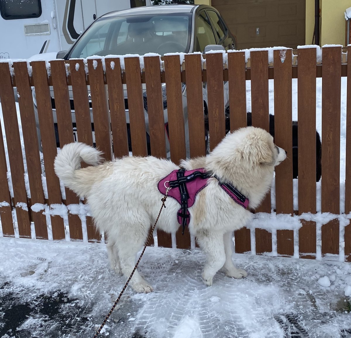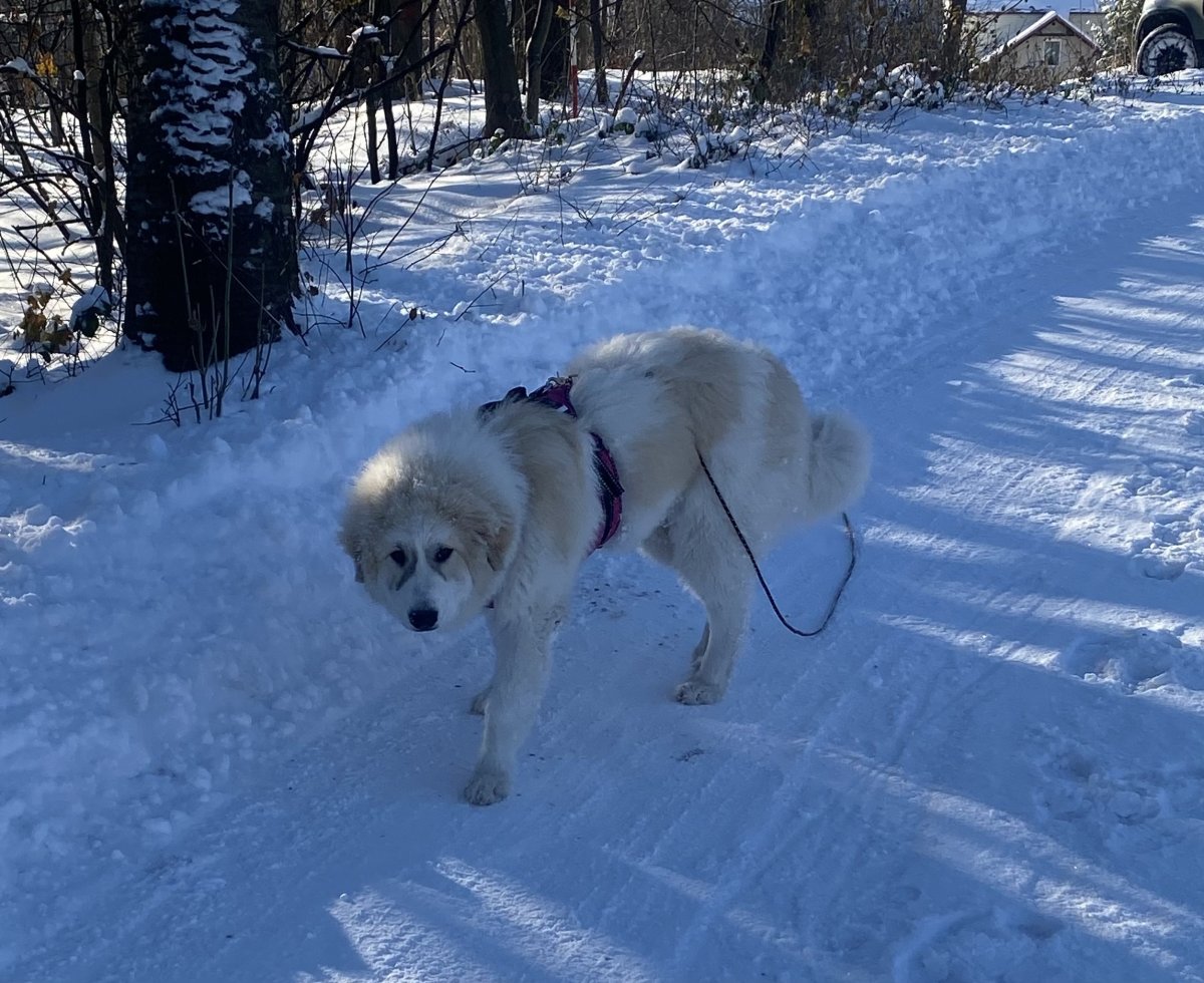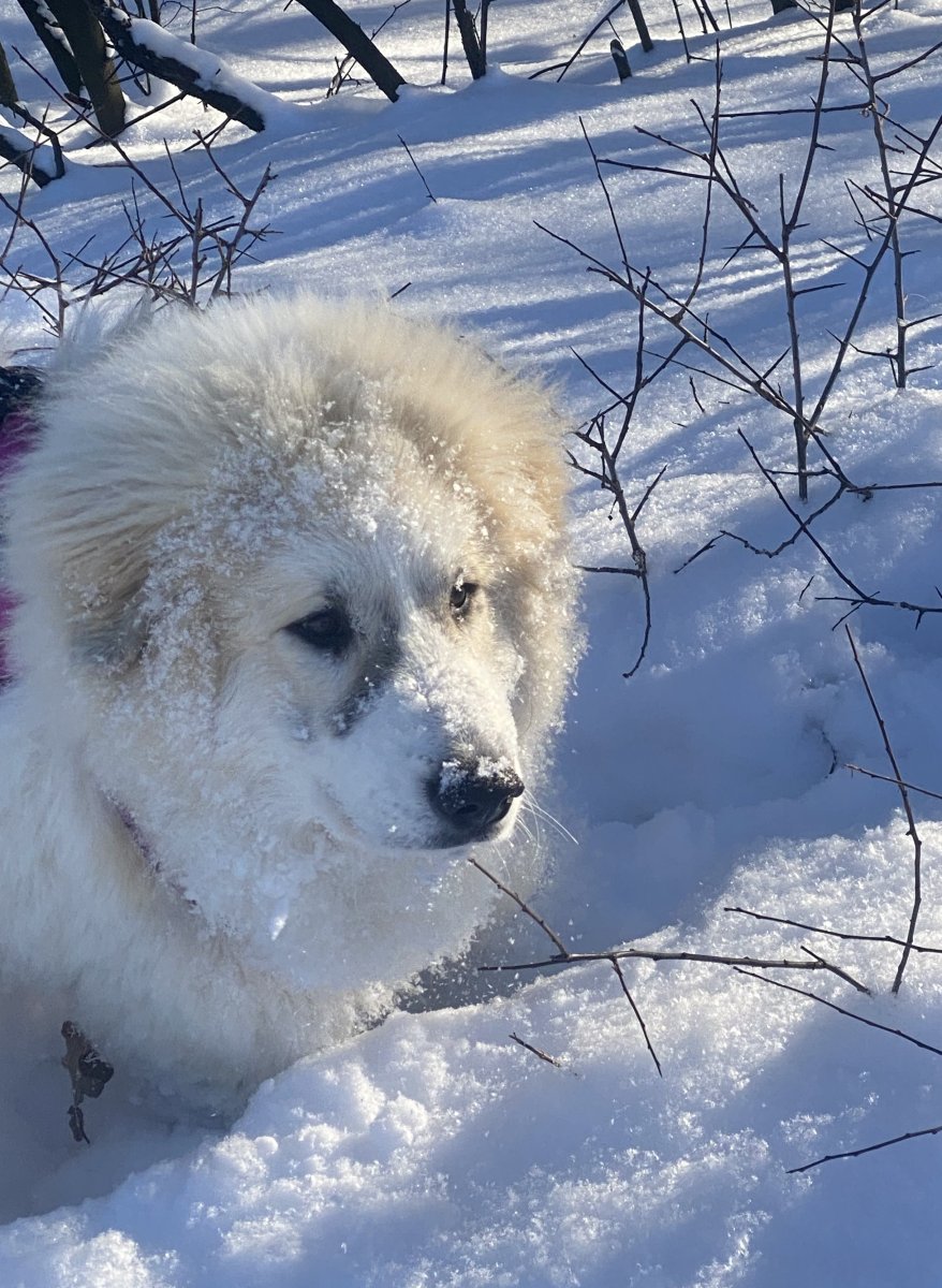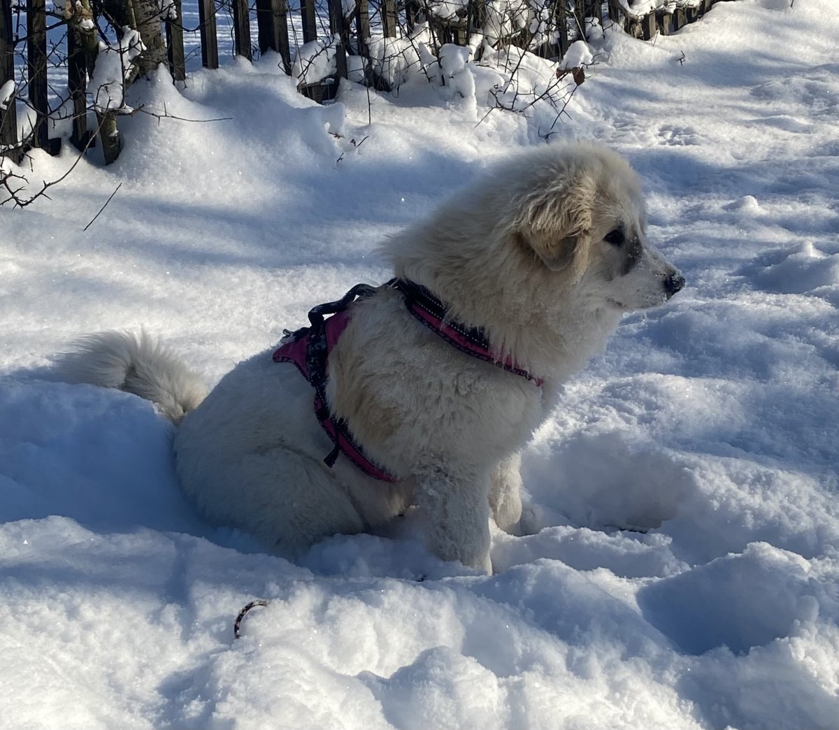 A Fram, ten se teprve vybarví, zatím vypadá, že bude moc fajn. Je klidný, vyrovnaný, vstřícný, něžný k malým dětem a psům, lehce vychytralý a tvrdohlavý, jeví vlohy pro pasení a stopy, určitě mu půjde obrana , miluje plavání a sníh, je ve všem takový uměřený , ryzí flegmatik, můžu pod ním luxovat ani se nehne 😅, má v sobě určitou nezávislost a smysl pro povinnost, třeba se rozhodnul, že někdo musí v noci hlídat vchodové dveře, když zbytek smečky spí🤣