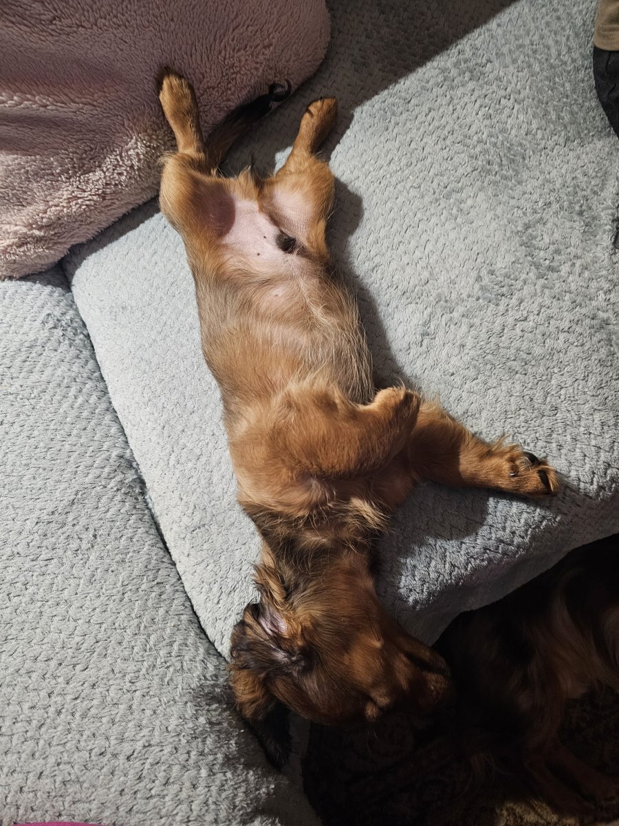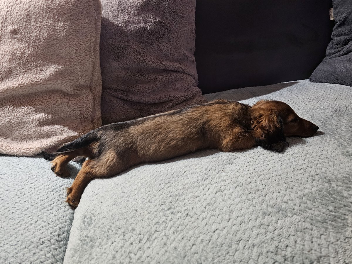 OK, dohodneme si termín předání. Twe, ten by vám to tam rozčísnul. 😀 Teď spinká a je to ukázkové štěkanátko, chrundí, nekouše a nedělá loužičky.