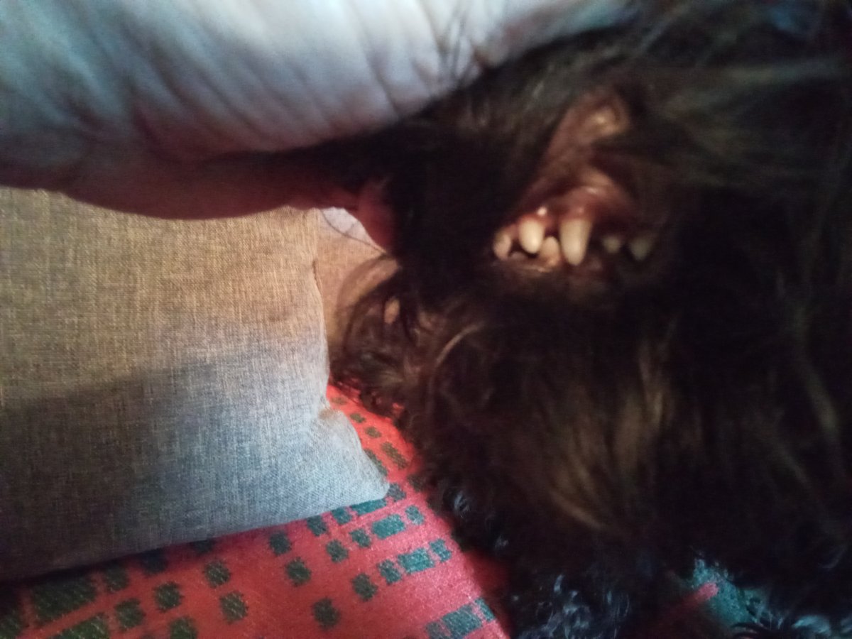 Ale bylo mi řečeno, že můžu🤫. Teď počkám nějaký čas a nechám mu zkontrolovat chrup, jak to dopadlo a opravdu nevážu gumičku do vlasů psovi na zuby. Neumím si představit, že bych vázala, ten pes by šel na novou operaci protože by gumičky snědl.