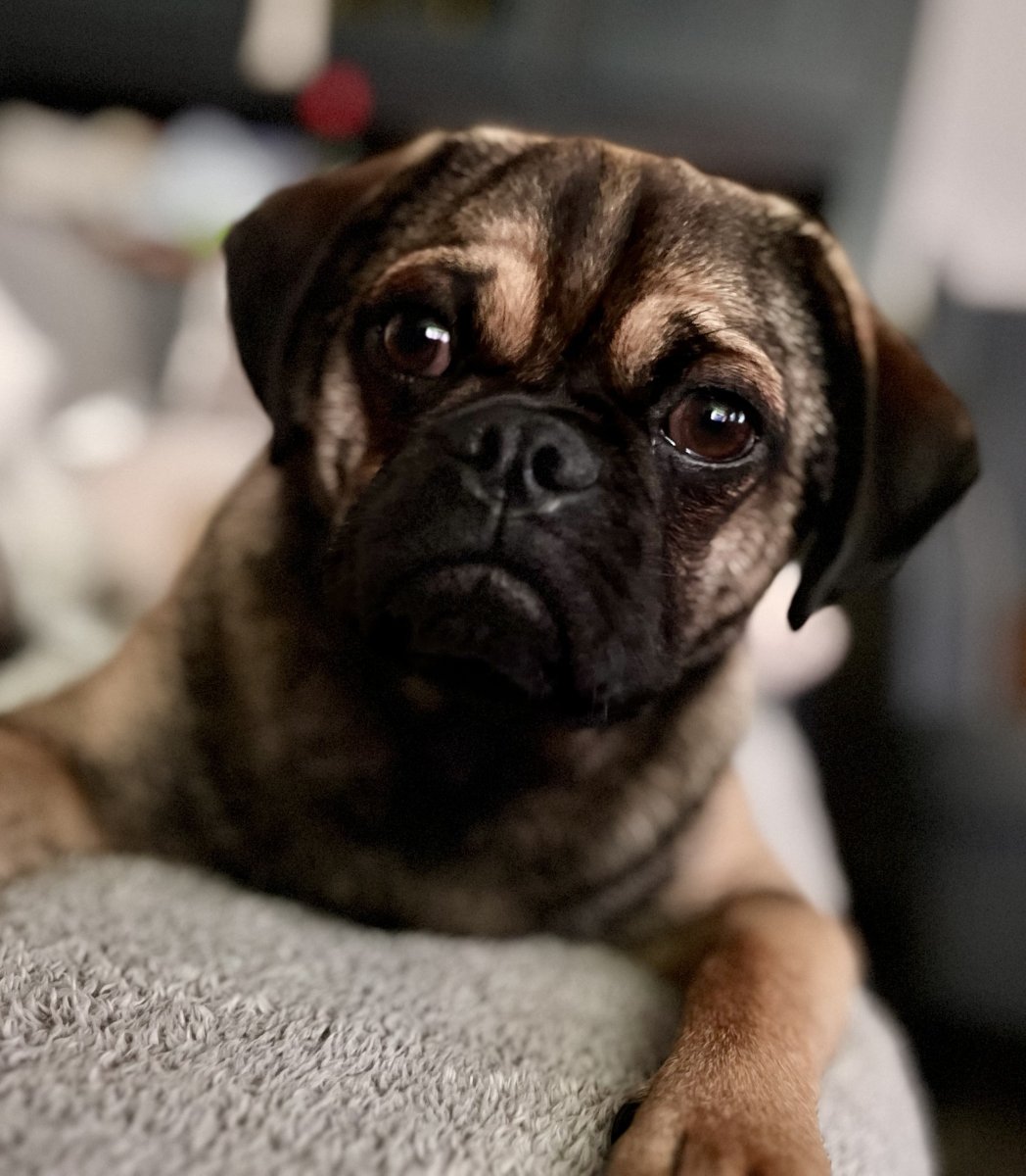 Zjistili jsme, že je dost nejistý z buldočků a mopslíků. Jak zachrčí, utíká se schovat (naštěstí se utíká schovat zamnou a ne někam do pryč). Jinak by si chtěl s každým hrát, tak pracujeme i na tom, že se za cizíma pejskama bez dovolení neběhá.