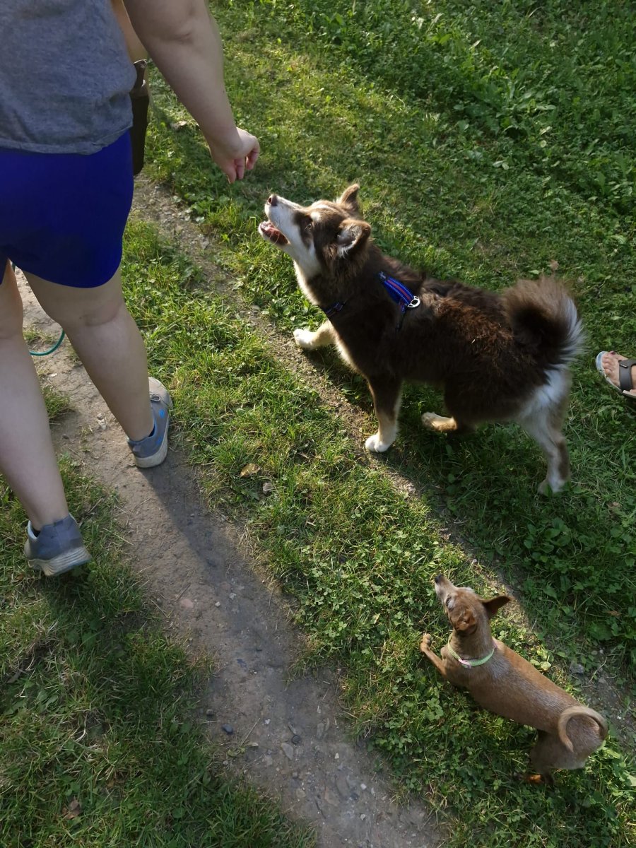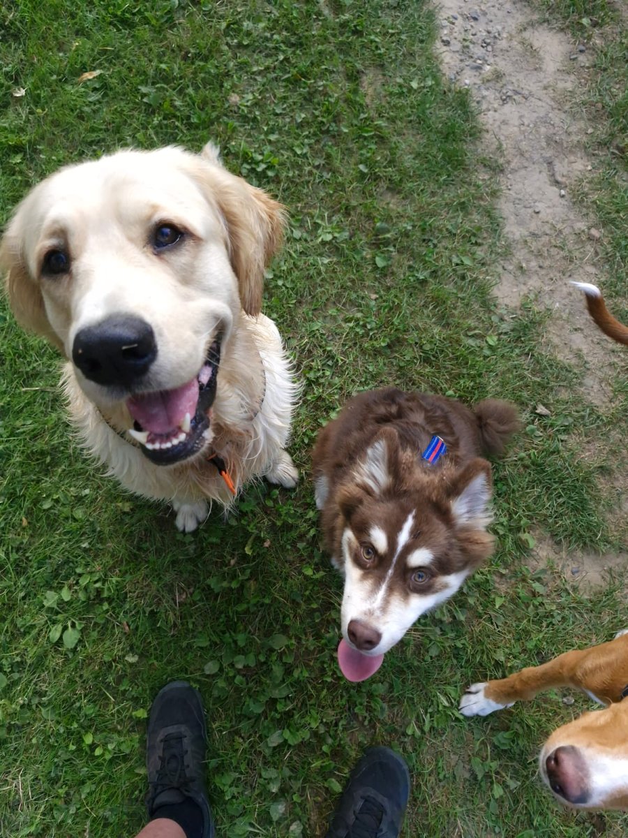 Tak tady aktuální fotky mého psího vnoučka… byl na návštěvě, aby se seznámil s psími kamarády, se kterými se o víkendech procházkuje.