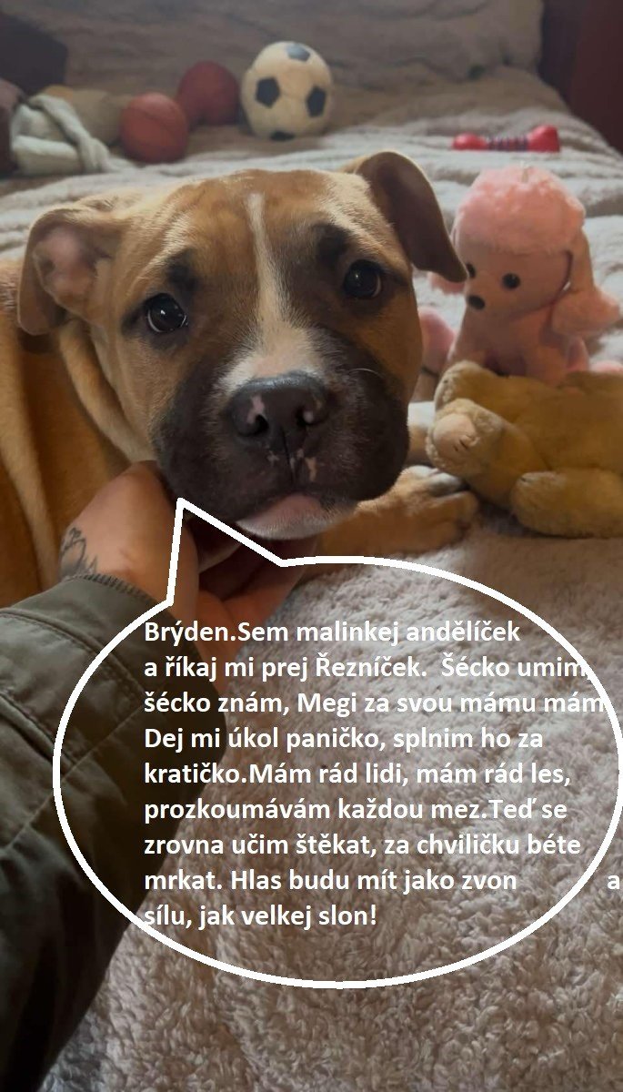 Jinak mě překvapilo, že je Meginka strakatá. Ted jsem ji viděla prvně a vždycky jsem si myslela, že je to tmavý stafbulíček. A Bůček je teda boží jméno 😂