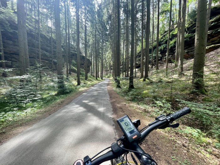 Vzala jsem si týden dovolené, byla jsem doma, manžel od rána do večera makal mimo domov, takže idylka, celý týden jsem si jela vlastní program a strašně jsem si psychicky odpočinula. Miluju to tu, kde bydlíme, neskutečná krása všude, kam se podíváš… Ujela jsem 230 km na kole a objevila spousty nových míst, kousíček za barákem. Nádherný lesní cesty, terénní sjezdy i výjezdy do kopců, všude skály a hlavně neskutečný klid bez lidí. Jen ty hospody, to je tady prostě strašná bída…