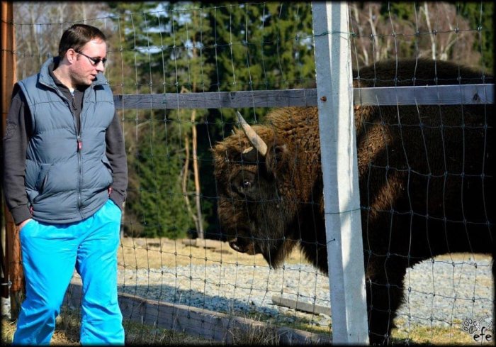 V Snine má jeden vet zubra na farme, je to tiež obluda, on mal poranenú nohu, tak si ho nejako vypiplal…kamarátka ma tam furt ťahá a ja odmietam, lebo proste keby ten zubor chcel, tak prejde tou drevenou ohradou aj múrom, si myslí, to zviera vo mne nevyvoláva žiadne kladné pocity a už vôbec nie dôvody sa k nemu približovať 🙄