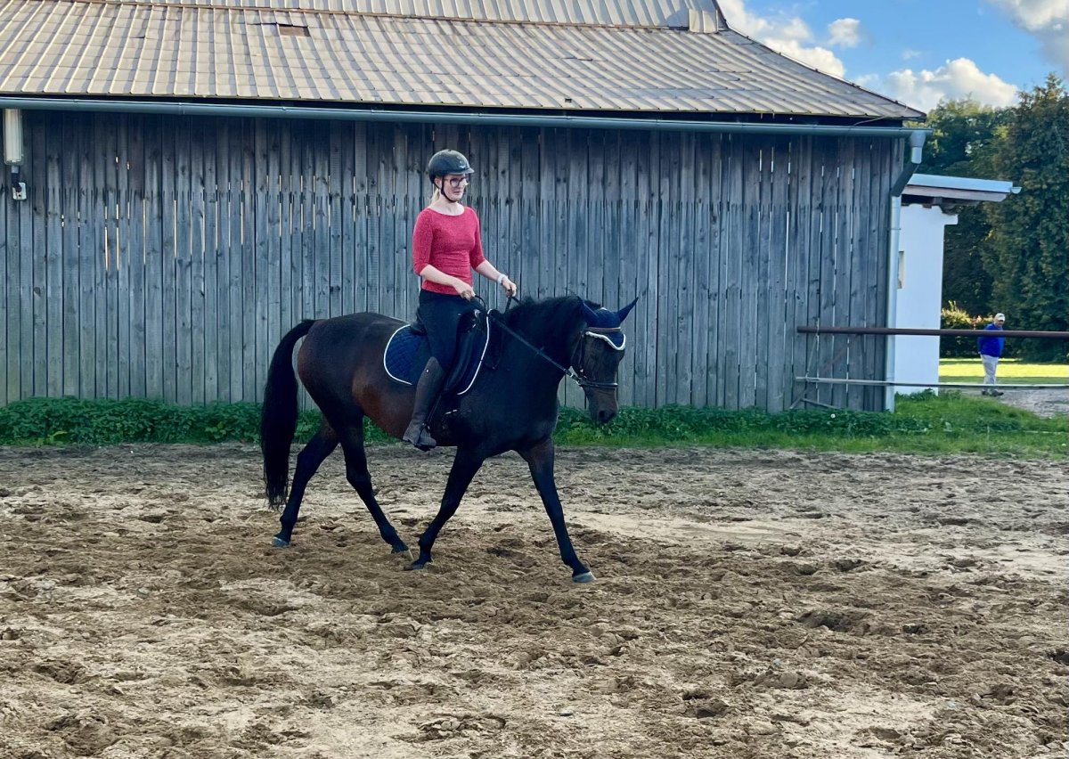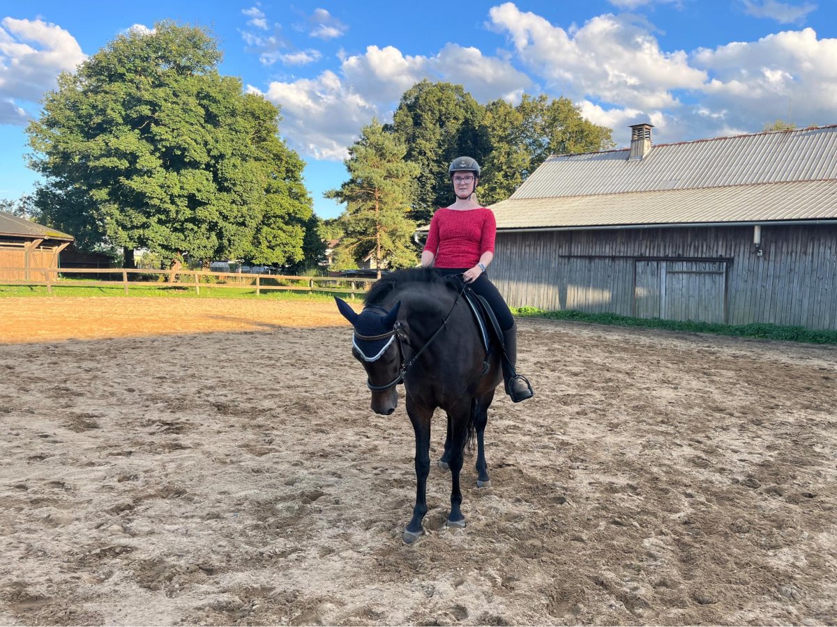 Tak předevčírem jsem s dítětem na černém zaklusala a včera jsem se vozila po výběhu sama v doprovodu člověka na zemi 🙂 Černej se s ježděním smířil, a že když u toho bude hodně pamlsků a pasení, tak dobrý 🙂 Sedlo na mě dělá dojem, že by mu mohlo rámcově sedět, a po zimě začnu zvažovat, co mu pořídit trvalého. Dítě z černého tréninkově seskakuje, ale já si ho vždycky na slézání přistavím ke schůdkům a soukám se z něj pěkně ke kloubům (svým) jemně 😀