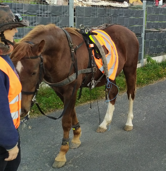 jala jsem se již za plné tmy trápit malého zrzavého ponýška (145 v kohoutku plus minus momentálně). Dala jsem mu postroj zkušební, posvazovaný provázkama (kdyby se do něj zamotal, ať to všechno povolí bez většího tlaku a poník nepropadne panice), místo postraňků dosahujících mu daleko za zadky jsem dala třmenové řemeny, které mu končí akorát tak u hlezen (dobré na to, ošúchat mu tím nohy, aby to mělo váhu, ale nedá se do toho zamotat), na ty jsem jako prodloužení dala zase přetrhnutelný provázek, a zavěsila jsem se do postraňků s helmou na hlavě coby prevencí kopu mým směrem. A ponýšek mě popotahoval (naštěstí kráčející ve vzpřímeném stavu) veden holčičkou po výběhu a byl hodný. Tak jsem začala šoupat nohy po zemi, to už teda střihal ušima, pak jsem mu oplácávala nohy těmi postraňky a tak různě a pak jsem na ty postraňky přivázala přinesenou větev jako rozporku (tak, aby se to rozvázalo, kdyby něco) a po chvilce jsem mu ji hodila za zadní nohy na zem. Tak jak mu začaly postraňky šúchat o tarsy, už to taková lemrácká pohoda nebyla 😀 Ale větývka se pokaždé krásně odvázala od provázků, kdy bylo potřeba, a postupně chlapec pochopil, že když se mu něco nezdá, má zastavit a my ho zachráníme a ještě přistane něco dobrého v papule 🥰 Tak se mi to líbí. No trápili jsme ho dobrých dvacet minut a když za sebou tu rozporku po zemi dotáhl k východu k domečku, tak jsme mu dali pohov. Chuďátko hřibátko, ať se těší, jak napadne sníh! Na posledním blešáku z posledních jsem letos ukořistila dvoje sáňky, takže mám celkem 4 sáňky, budou makat 4 koně v saních! 😛 (zrzavej v čele! Teda nejspíš proto, že se lekne a vezme galup domů…)