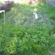 Vlevo vidět plůtek - spodek z proplétaných větví, inspirace od Jebáčkové-Lažanské z Eqch (myslím, že to ona psala o živých plotech, kytkách a vzhledných úpravách terénu a tak). Nad plůtek z větví napíchaný kozí oplůtek elektrická síť na tyčkách (bez elektriky). Spodní plůtek v zimě a na jaře zvýším a bude hej 🙂 Vpravo ohraničuje políčko obyčejné lesácké pletivo, z kterého máme výběhy, ale jsou tam hustě kmeny po břízách, do kterých je pletivo vrostlé, takže pro prasata doufejme neprůchozí, navíc jsou do toho do půl metru výšky kvůli slepicím zasazená dlouhá prkna, aby mi slepice nemohly na záhon chodit hrabat. Takže i celkem neprůhledné. Taky je to ta strana, odkud by prasata dorazila. Myslím si, že z té je to tedy celkem zabezpečeno. Tak ještě proti srnce.