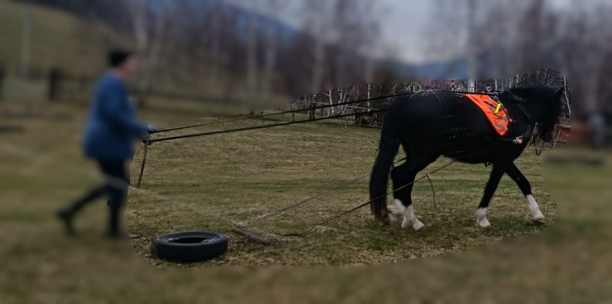 Jinak toho, jak to pěkně zvládá pod sedlem, hodlám využívat, a bude tahat pneumatičku i jezdec v ruce, třeba i na vyjížďce něco rachtavého potahá za sebou, ať si mladej zvyká, a přesně, jezdci na zádech hned tak neuteče, takže postupně, ono to půjde 🙂