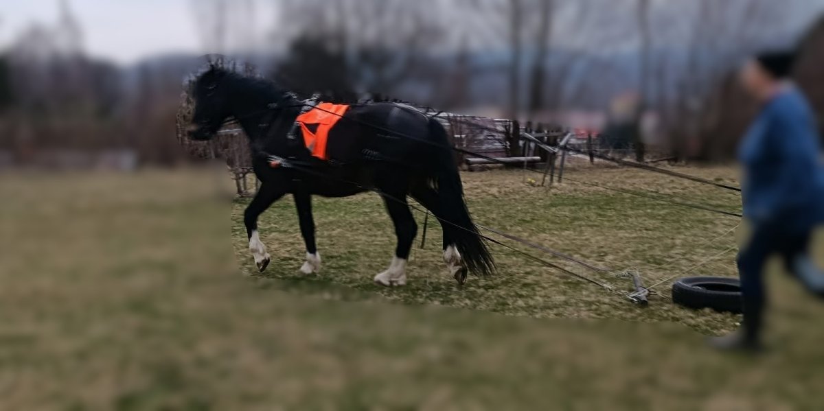 Přidám obrázek našeho statečného mladíka, kterak už s dospěláckou rozporkou tahá pneumatičku 🙂 Teda průchod přes vodní příkop (betonová plocha) je pro něj ještě velmi náročný, protože tam to břemeno vždycky “hrozně” zachrastí, tak posledně nám takhle na opratích dokonce utekl… po výběhu. Břemeno se utrhlo u první překážky, takže dál běžel s jedním postraňkem a opratěmi. Já ho přes vodní příkop vodím ještě z ruky, ale děvčata měla pocit, že přece už je profík, tak že můžou na opratích. No ale po odchycení jsme ještě potahali, dokonce i přes příkop (bez břemene, ale s kovovými chrastítky na koncích postraňků) prošli, a samozřejmě se konala hrůza a děs, ale jen zadupání a pochopení, že se nic tak strašného nestalo. Tak jsme si neudělali úplně stopku v tahání. Pomalu bych s chlapcem ráda ven, na ten nejmenší notoricky známý okruh kolem komína, ale to musím najít někoho silného a vytrvalého, kdo za námi tu pneumatiku potáhne, protože po louce mu věřím, že to dá, ale přechod na asfalt by mohl být rychlý úprk neznámo kam, takže to potřebujeme pořešit zatím tak, že nebude zapřažený, a jen se za ním ta hrůzná věc potáhne druhou osobou 🙂 Možná ☝️by tu hrůzu mohl táhnout nějaký poník! 😀 Tak uvidíme.