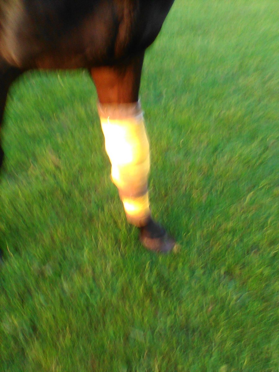 O fixácii sme sa nesnažili, resp. veterinár sa nesnažil, ja sa len opičím po ňom (na fotu moja práca, poväčšinou s kancelárskou izolepou). Koňovi na tom neide ohnúť karpus, a to nám stačí, čiže si nemôže ľahnúť (to “o” se stříškou nemám na klávesnici, musela jsem zkopírovat). Chudák malý.