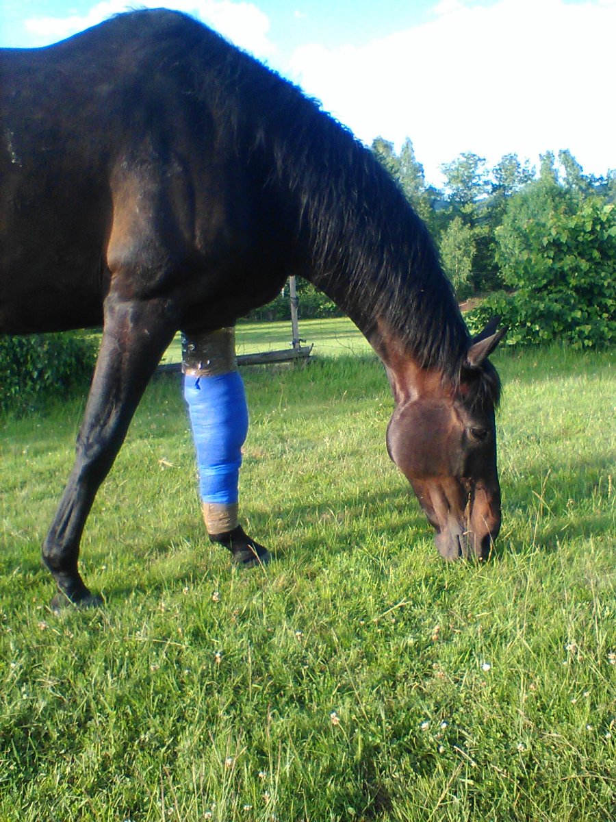 No a co mě překvapilo posledně, vet dal přes ránu polštářek napuštěný kortikoidy, říkal. Aby to nehypergranulovalo, protože ránu už máme zataženou pěkně do roviny s kůží, další materiál už nepotřebujeme. Ví někdo, funguje to tak? To jsem docela koukala, no ale asi proč ne, no. Jen aby to nezbrzdilo hojení… Tak teď má od pondělí B zase převázáno od veta, včera jsem na to koukala jen zběžně z dálky a holky říkaly, že to koni nesjelo ke kloubu, ten okraj obvazu, tak snad včera ještě dobré. No dneska si to prohlídnu zblízka a kdyžtak přemotám. Vet má přijet zítra, tak bych to nejradši nechala, ale uvidím, v jakém to najdu stavu.