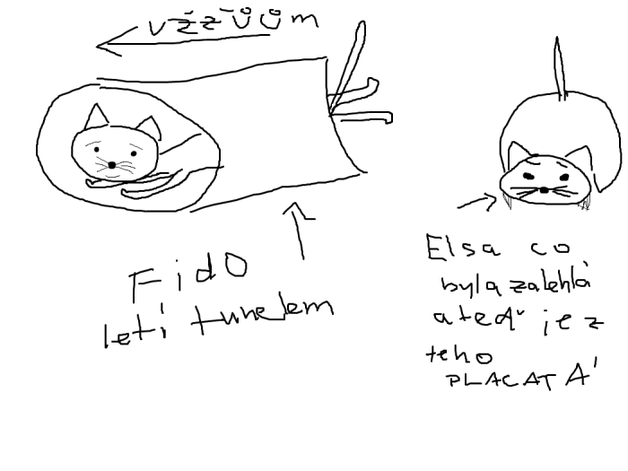 Teprve před chvílí jsem přišla domů a Fido začal obrrychlostí běhat kočičími tunely, vydávat zvuky (což jinak nedělá) a číhá na ty dva! Ti jsou z toho totálně paf, stejně jako já, Prostřední před ním před chvílí dokonce zajel pod postel… Fido vypadá jak mladičké divoké kotě a já jen doufám, že se nepomátl!!!