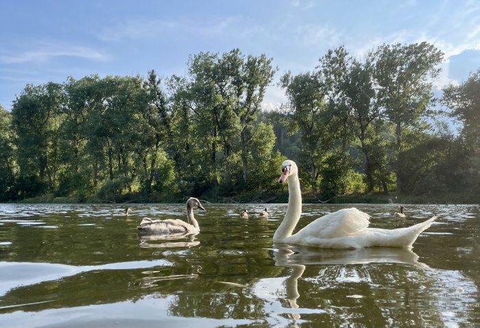 Ze šesti mláďat zbylo jedno, ostatní popadala přes jez. Nepotřebují v létě přikrmovat, ale jakoby věděly, že bylo krmení floating allround pro vrubozubé v akci a že jsem ho koupila… naučily to jedno připlavat první a žebrat hlasitým vysokým pípákem tak dlouho, že jdu a nakonec jim dám.