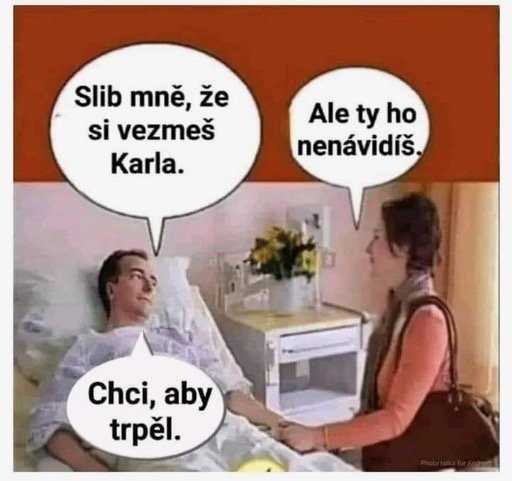 Povídají si němec, polák a čech. Němec:,,Já si za vánoční prémie asi koupím dům a za zbytek dovolenou". Polák:,,Já si koupím auto a zbytek by šel na spoření". Čech:,,Já si koupím svetr". Němec a polák se na něj podívají a polák se ptá:,, A zbytek?" Čech:,,No zbytek mi na něj dají rodiče".