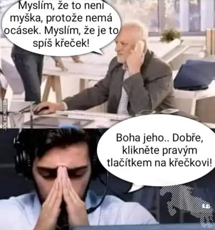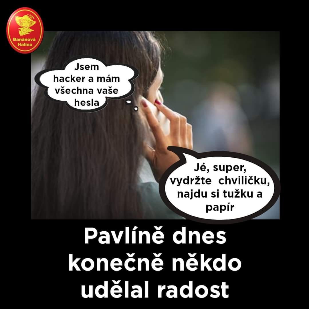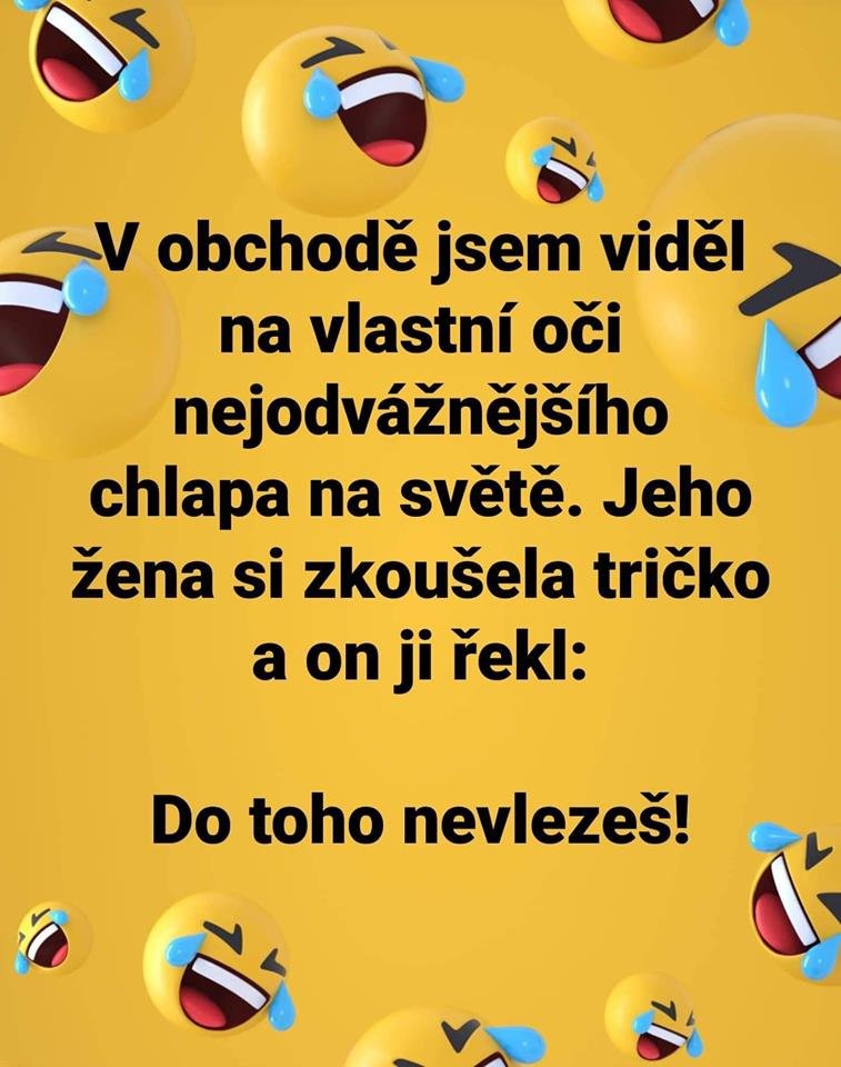Paní středního věku jde za soumraku parkem. Když tu najednou uslyší za sebou kroky a nějaký hlomoz. Lekne se, ale jde dál. Vtom se ozve:"Stát!" Paní zděšena zastaví. Po chvíli další výkřik:"Lehnout!" Tak paní poslušně a v hrůze lehne na zem. Poté se ozve:"Plazit se!" To už je úplně nervově zhroucená, ale začne se tedy plazit po zemi…když vtom se k ní skloní nějaký muž se starostlivými slovy:"Paní, stalo se Vám něco? Já tu cvičím svého psa."😉