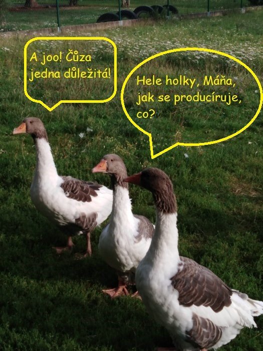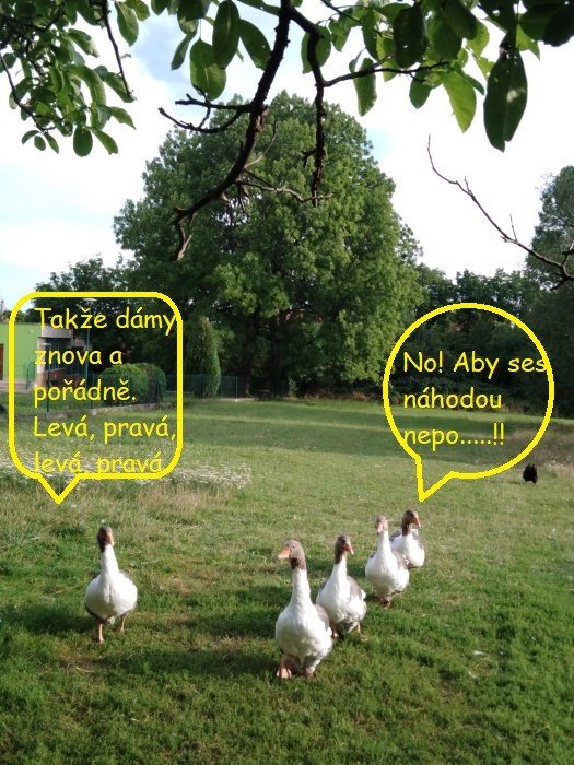 Ančovičko, ach, máte krásný husy! Já vim že závist je hroznej hřích, ale nemožu si pomoci. Husy nikdá mít nebudu a tak jen ne tiše, vůbec ne tiše, ale nahlas záááávidim!