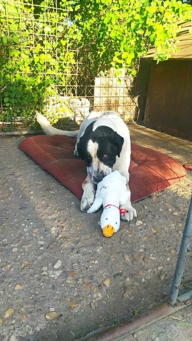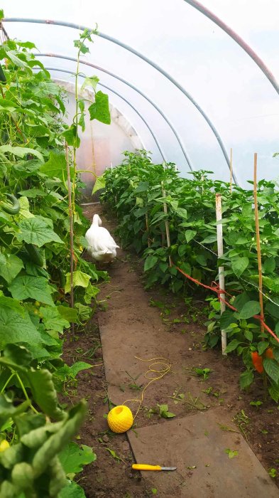 Zdravím😀. Tak jsem uvažovala, že Gustíka vycvičím na zahradníkova pomocníka. Jako kontrolor kvality mé práce, se osvědčil. Nicméně, jinak je to zahradní škůdce a žere okurky😜.