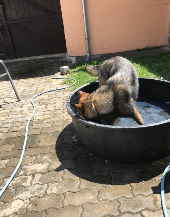 My máme takové u koní na napájení. Blbé je, že malý pes z ní sám nevyleze, a seskakování z rantlu na zem taky nic moc, pokud není zapuštěná.