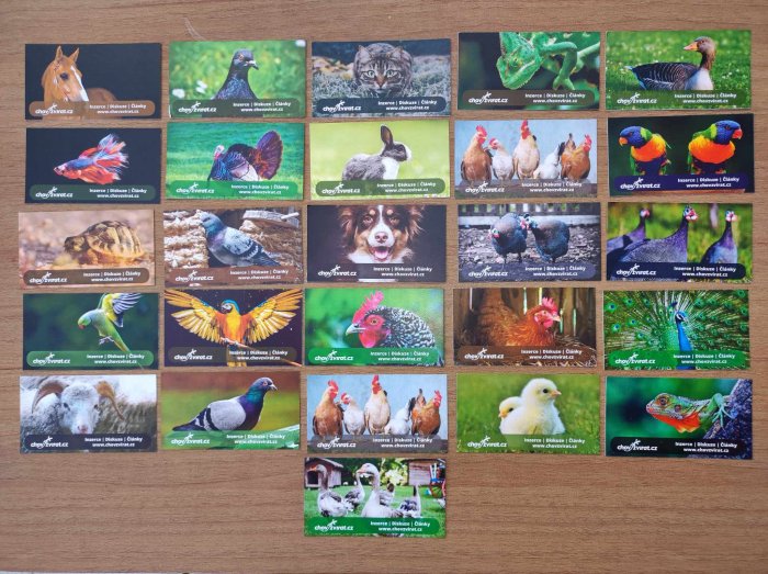 Díky vám a vaším podnětům jsme diskuzní fórum vylepšili a stále ještě vylepšovat budeme. Za trpělivost, kterou toto budování vyžadovalo, jsme se rozhodli všem registrovaným uživatelům poděkovat malým dárkem. Nechali jsme vyrobit reklamní předměty chovzvirat.cz: propisky, náramky na ruku (není dole na fotce), vizitky, samolepky a placky (na připnutí na tričko, mikinu, batoh) s motivy zvířat. Každý z vás si vybere zvíře dle vašeho chovatelského zaměření. Akce probíhá od pátku 14.7. do pátku 21.7. Během této doby pište do tohoto vlákna libovolný příspěvek, třeba jen „jsem zde“. Není rozhodující, zda jste přispěli do diskuze 100 příspěvky nebo jste nově příchozí bez jediného příspěvku. Do soukromé zprávy mi pak napište adresu pro doručení dárku a motiv zvířete, který chcete na placce a samolepce (k tomu dostanete ještě propisku, náramek na ruku, vizitku). Protože respektujeme vaše soukromí a vystupování pod přezdívkami, zašleme vám balíček na výdejní místo ve vašem městě (Zásilkovna, Balíkovna, PPL ParcelShop).